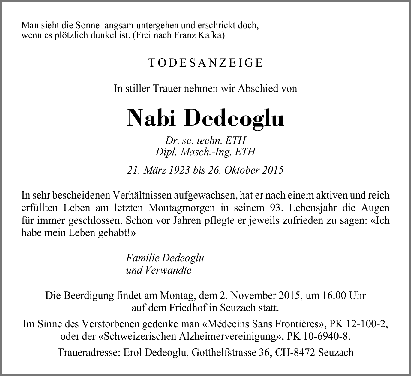 Möchten Sie über neue Todesanzeigen und Kondolenzen für diesen Verstorbenen informiert werden?