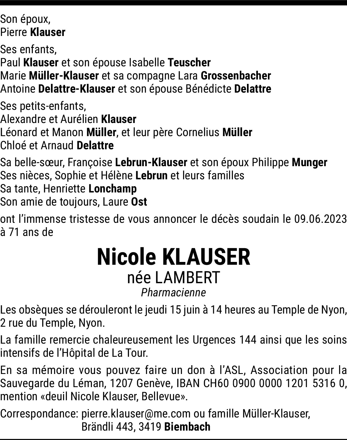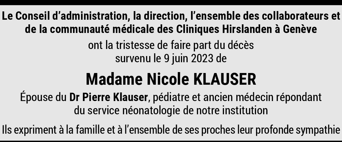 C’est avec tristesse que j’ai appris hier le décès de Madame Klauser.