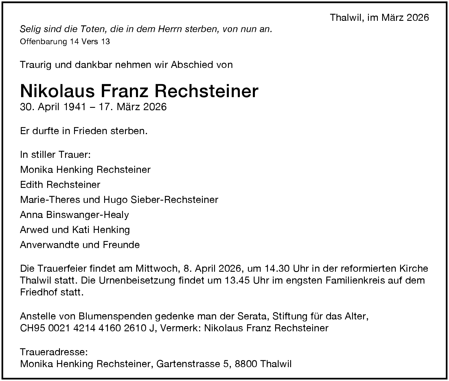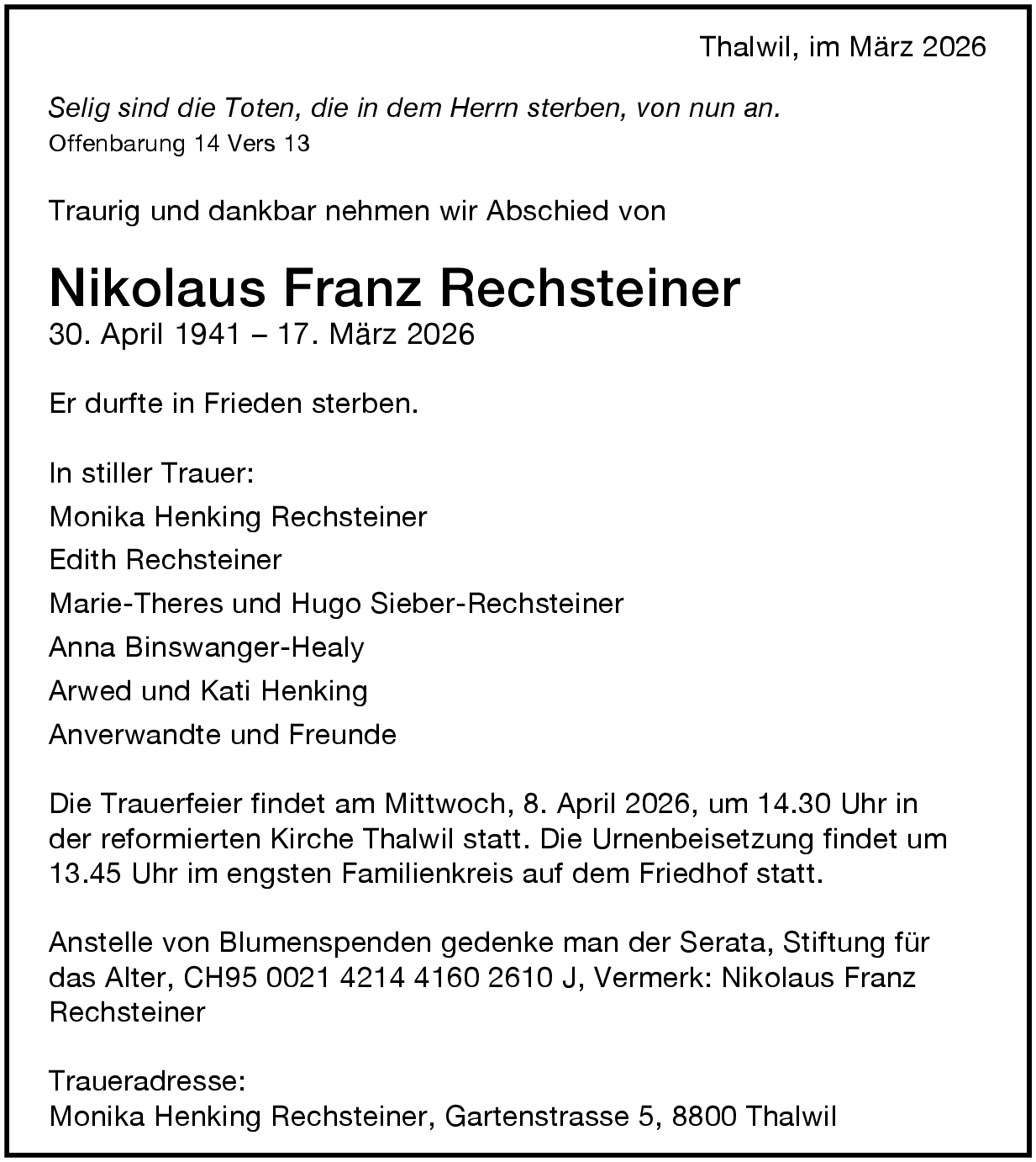 Möchten Sie über neue Todesanzeigen und Kondolenzen für diesen Verstorbenen informiert werden?