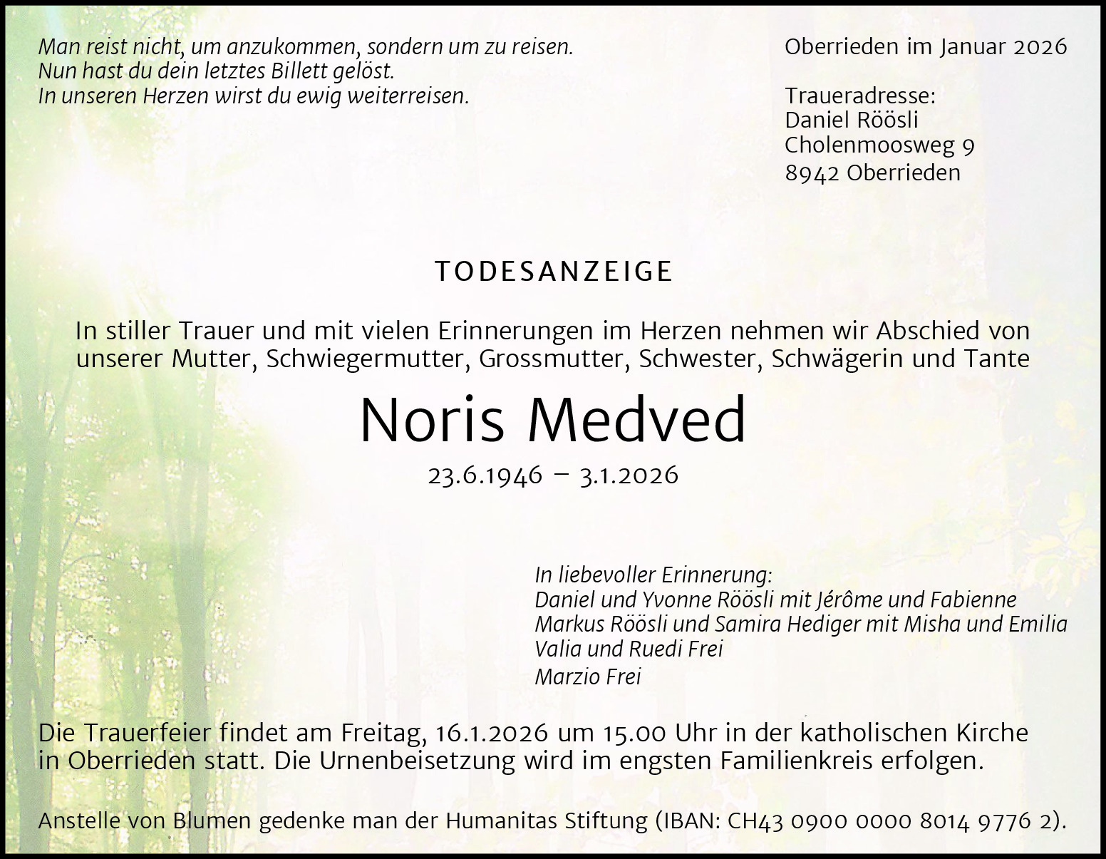 Liebe Noris, danke, dass wir ein kleines Stück Lebensweg zusammen gehen konnten.