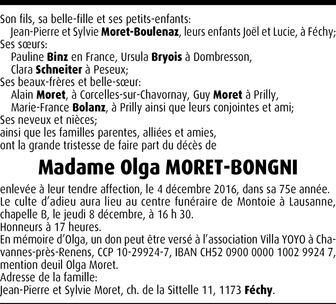Vor mehr als 4 Jahren Melden Devant ce douloureux coup du sort, nous sommes à la fois tristes et décontenancés. Nous voudrions vous apporter un peu de réconfort mais, aujourd'hui, les mots nous manquent. Recevez toute notre tendresse. Von Christian Aeberhard