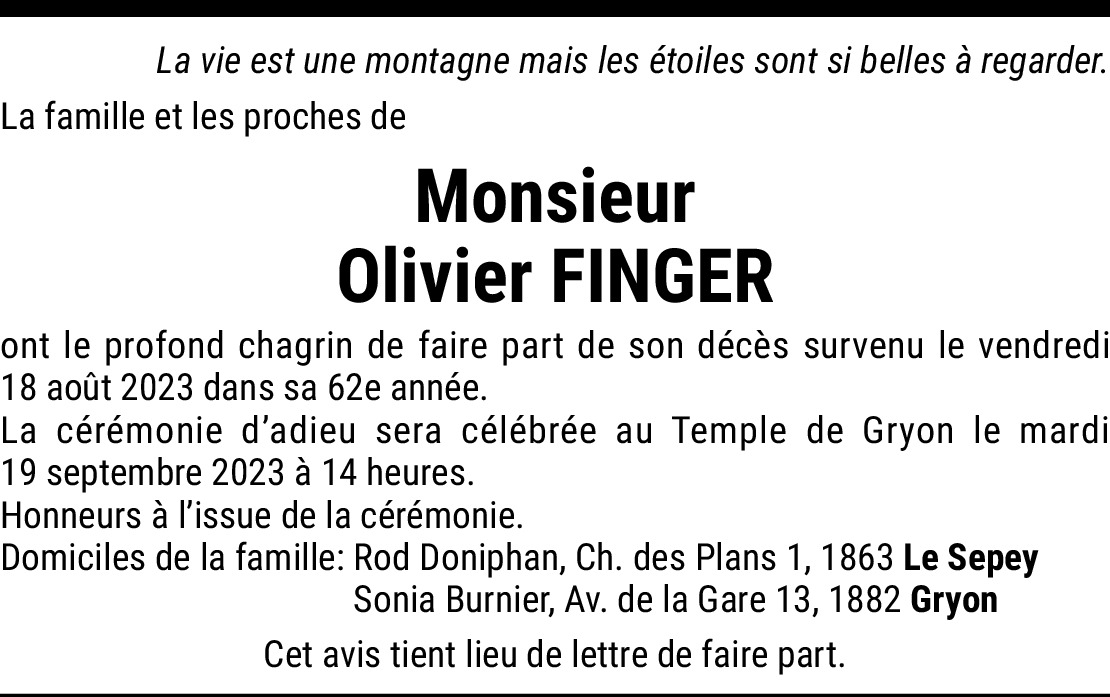 14.09.2023 Melden C'est avec beaucoup de peine que nous avons appris qu'Olivier nous a quitté. Nous sommes de toute cœur avec vous en ces moment pénibles que seul le temps pourra apaiser. Von Jenny