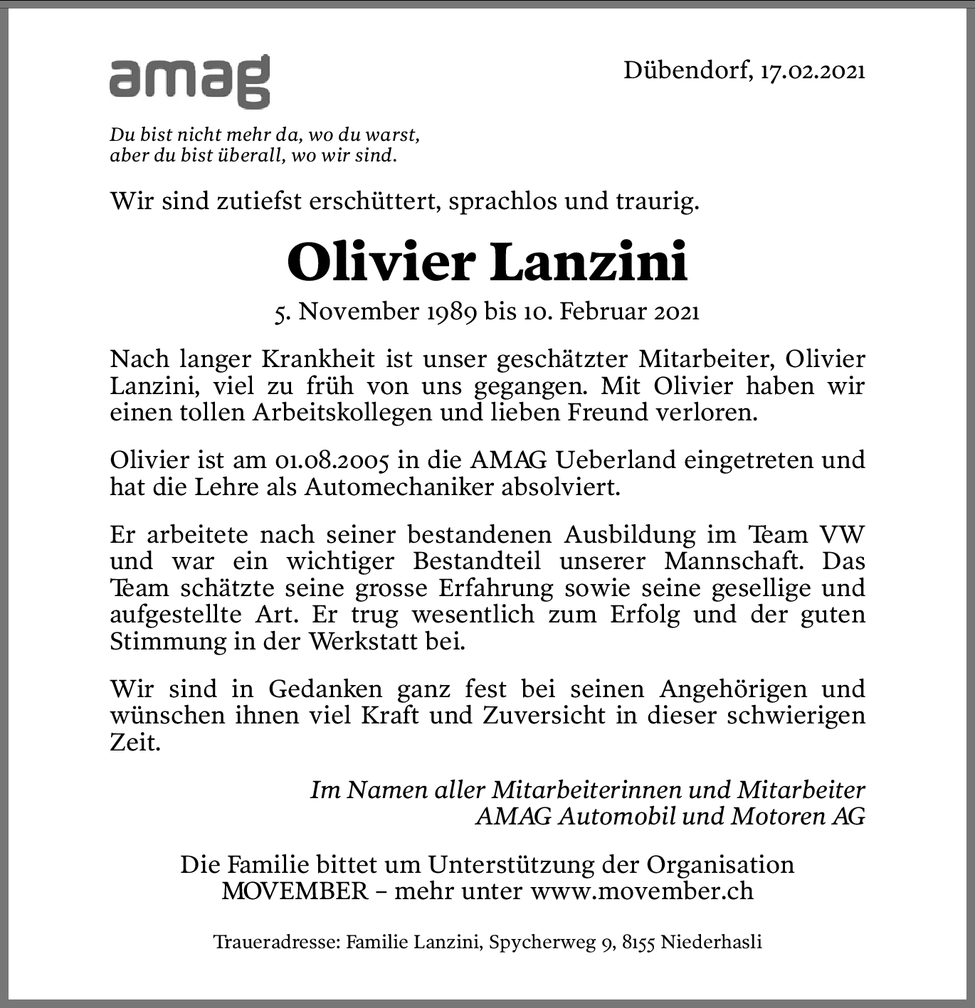 Möchten Sie über neue Todesanzeigen und Kondolenzen für diesen Verstorbenen informiert werden?