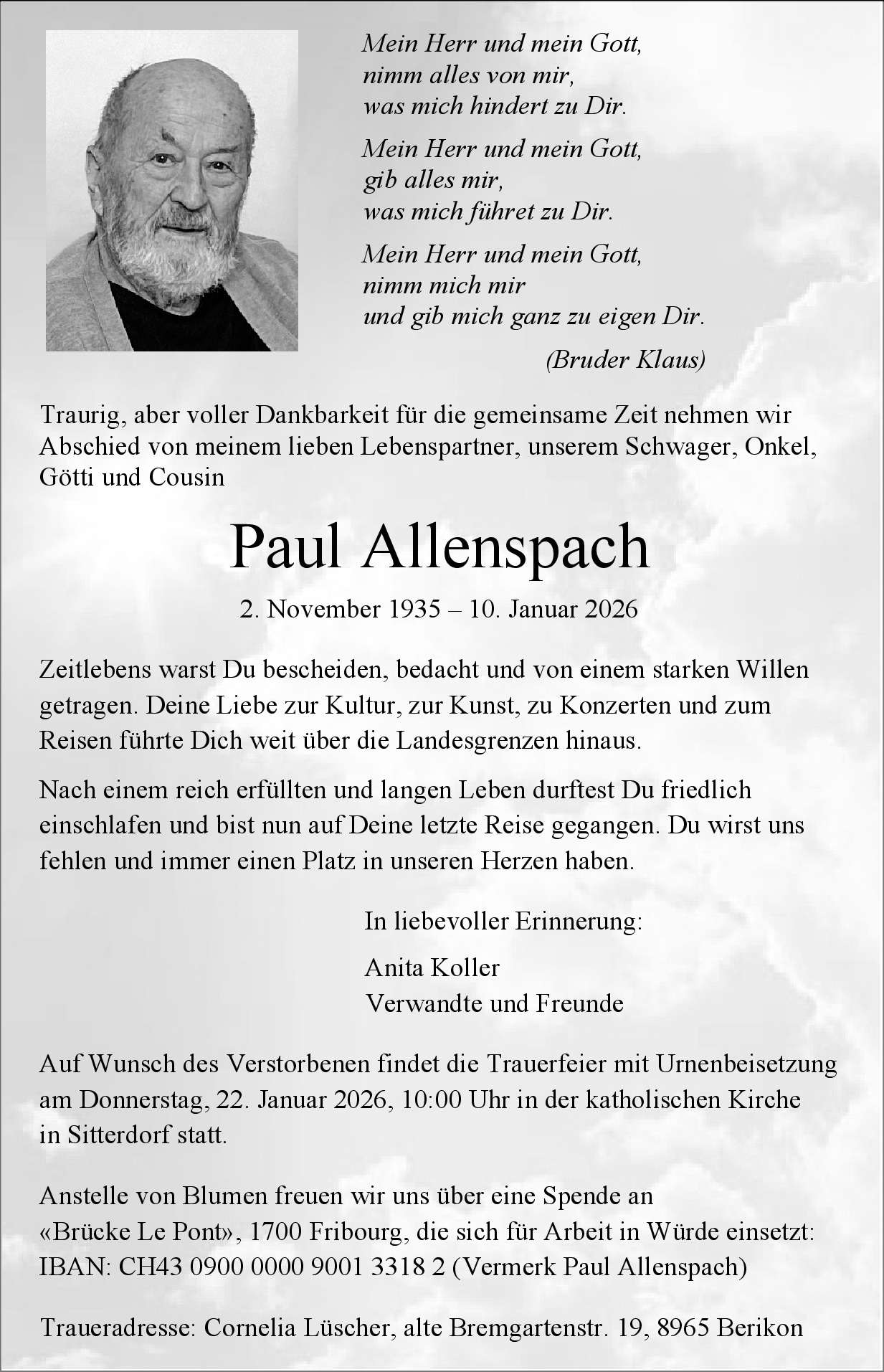 Möchten Sie über neue Todesanzeigen und Kondolenzen für diesen Verstorbenen informiert werden?