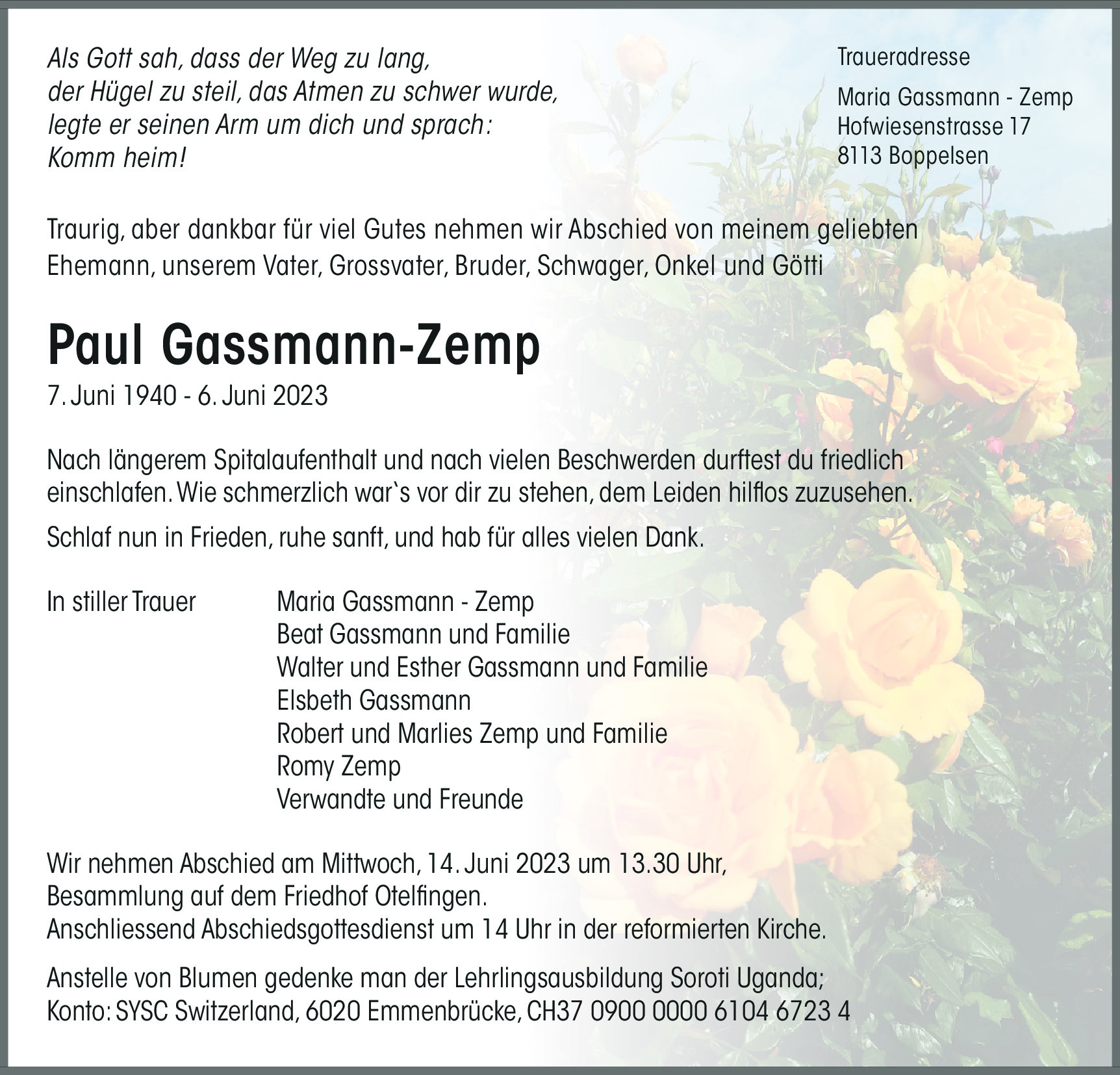 Möchten Sie über neue Todesanzeigen und Kondolenzen für diesen Verstorbenen informiert werden?