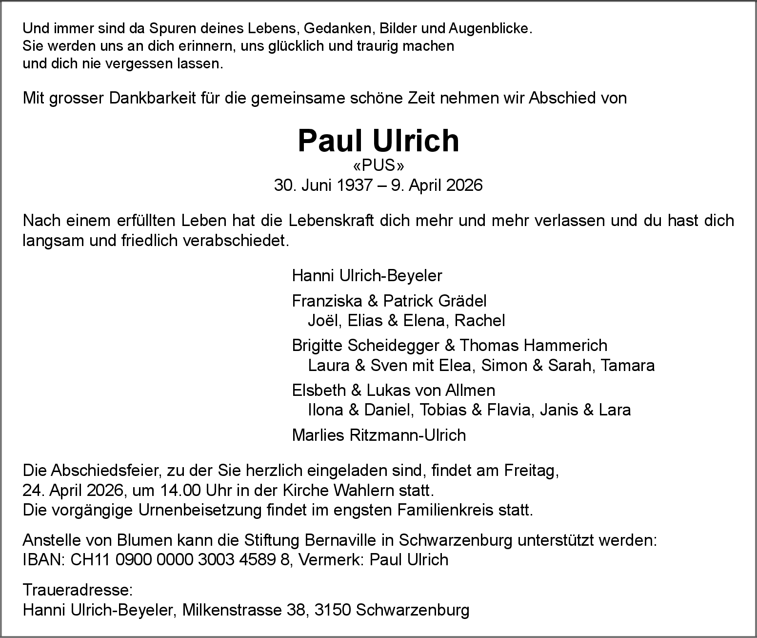 Möchten Sie über neue Todesanzeigen und Kondolenzen für diesen Verstorbenen informiert werden?
