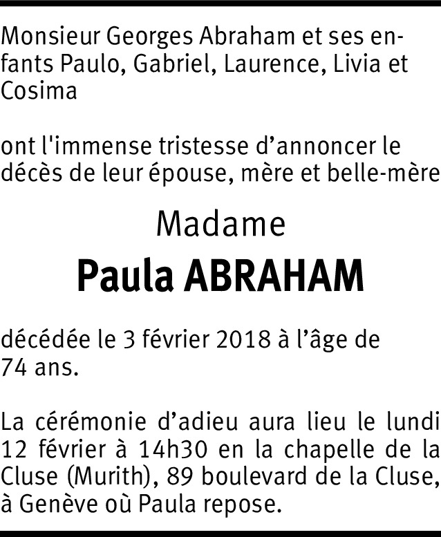 Paula and I were born a week apart. We met in the first grade of elementary school in Iowa City. Over the ensuing years we sang in the same chorus, took many courses together, including her mother’s Spanish class, and by the time we finished high school we had even tried dating, but more than anything, we had become close friends. Later we traveled around Europe together for nearly six months with her father who was also one of my Spanish professors at the University of Iowa. After Paula moved to France and later Switzerland, we saw each other infrequently, but remained close friends and often spoke on the telephone. We could talk about anything and everything, from world politics and the value of the Swiss franc against the dollar to when was the last time we had filed our finger nails. The last couple of times we spoke we talked about getting old. She told me she was content with her life and felt she had realized most of the things the had wanted. She was funny, charming, at times acerbic but also courteous, thoughtful and kind. Ours was the longest-lasting friendship of my life, and her passing has left me with a tremendous void. Jorge joins me in extending our sincere sympathy and heart-felt condolences to her family and friends at this time of grief.