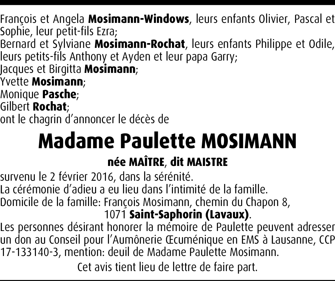 Paulette Mosimann Maître