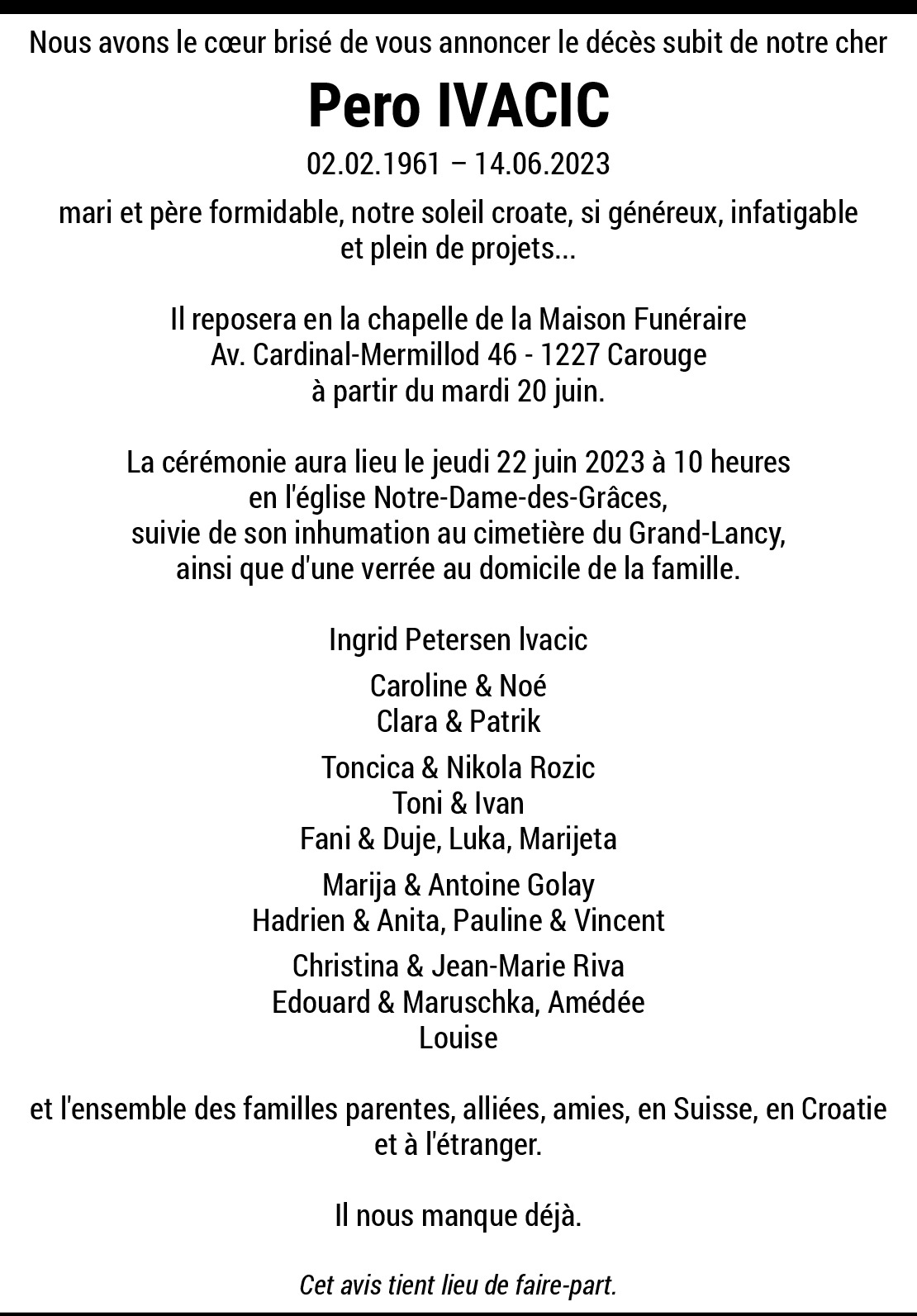 Nous adressons nos sincères condoléances à la famille et aux proches. Beaucoup de force et de confiance en cette période difficile.