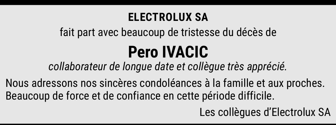 Electrolux SA fait part avec beaucoup de tristesse du décès de Pero IVACIC