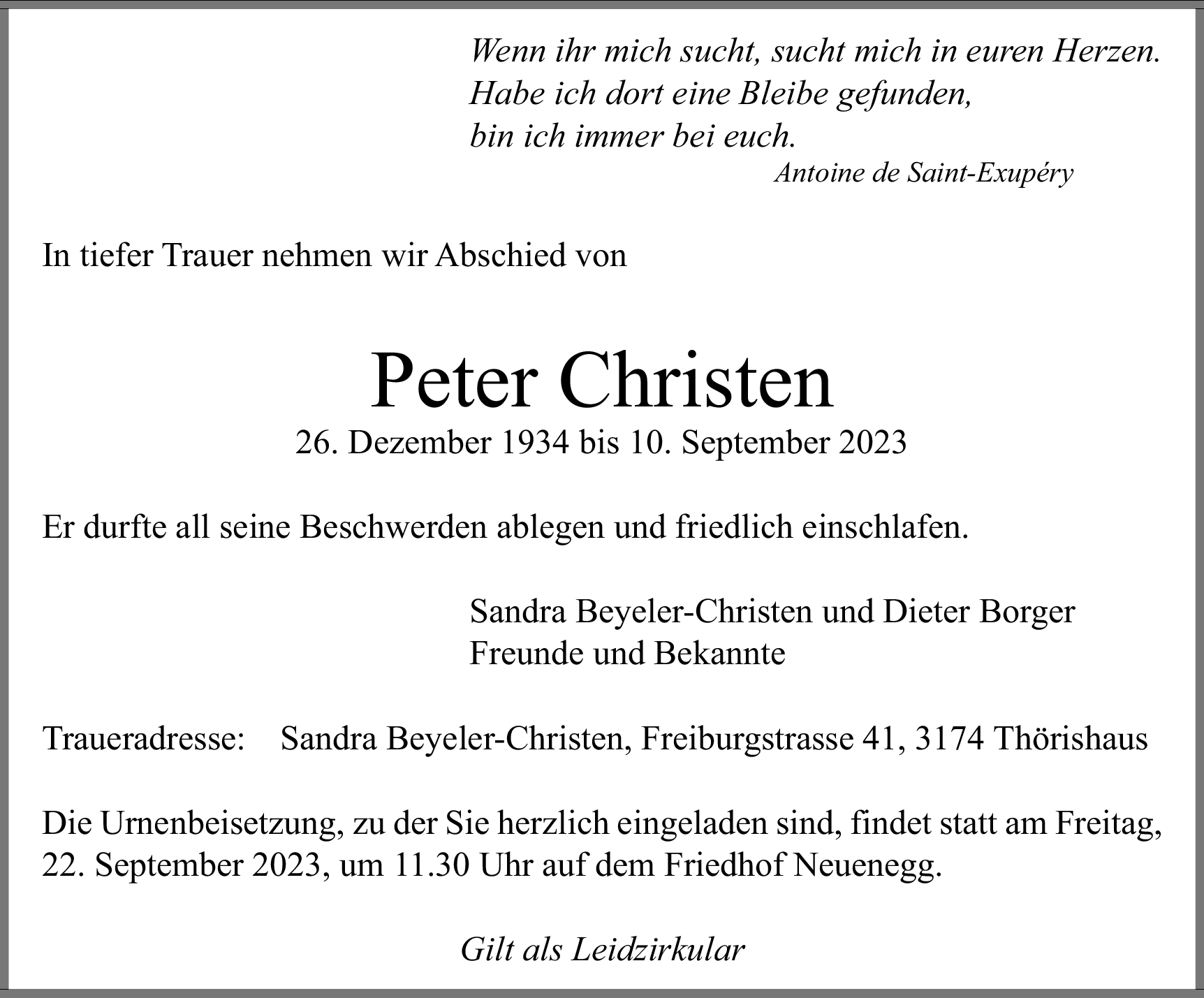 Möchten Sie über neue Todesanzeigen und Kondolenzen für diesen Verstorbenen informiert werden?