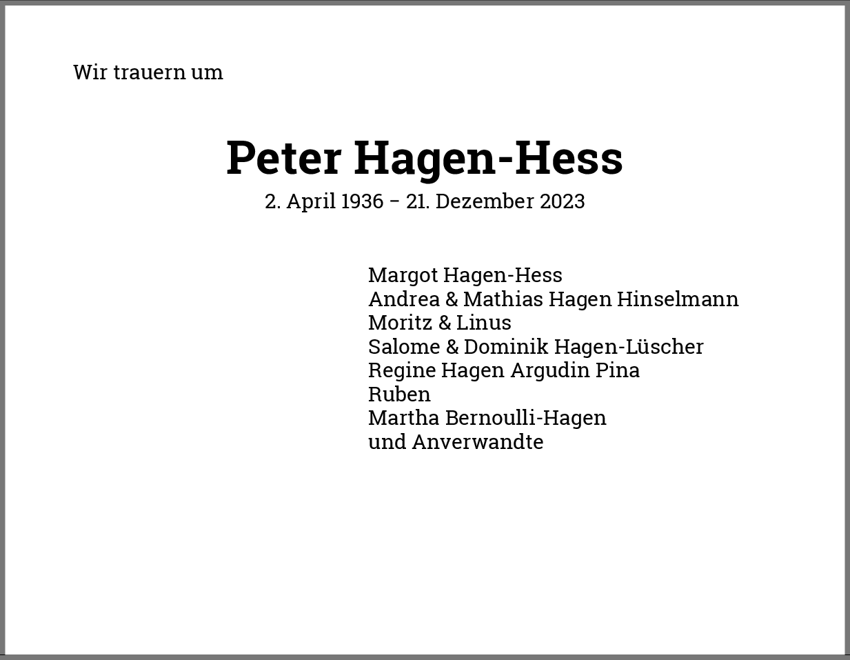 Möchten Sie über neue Todesanzeigen und Kondolenzen für diesen Verstorbenen informiert werden?