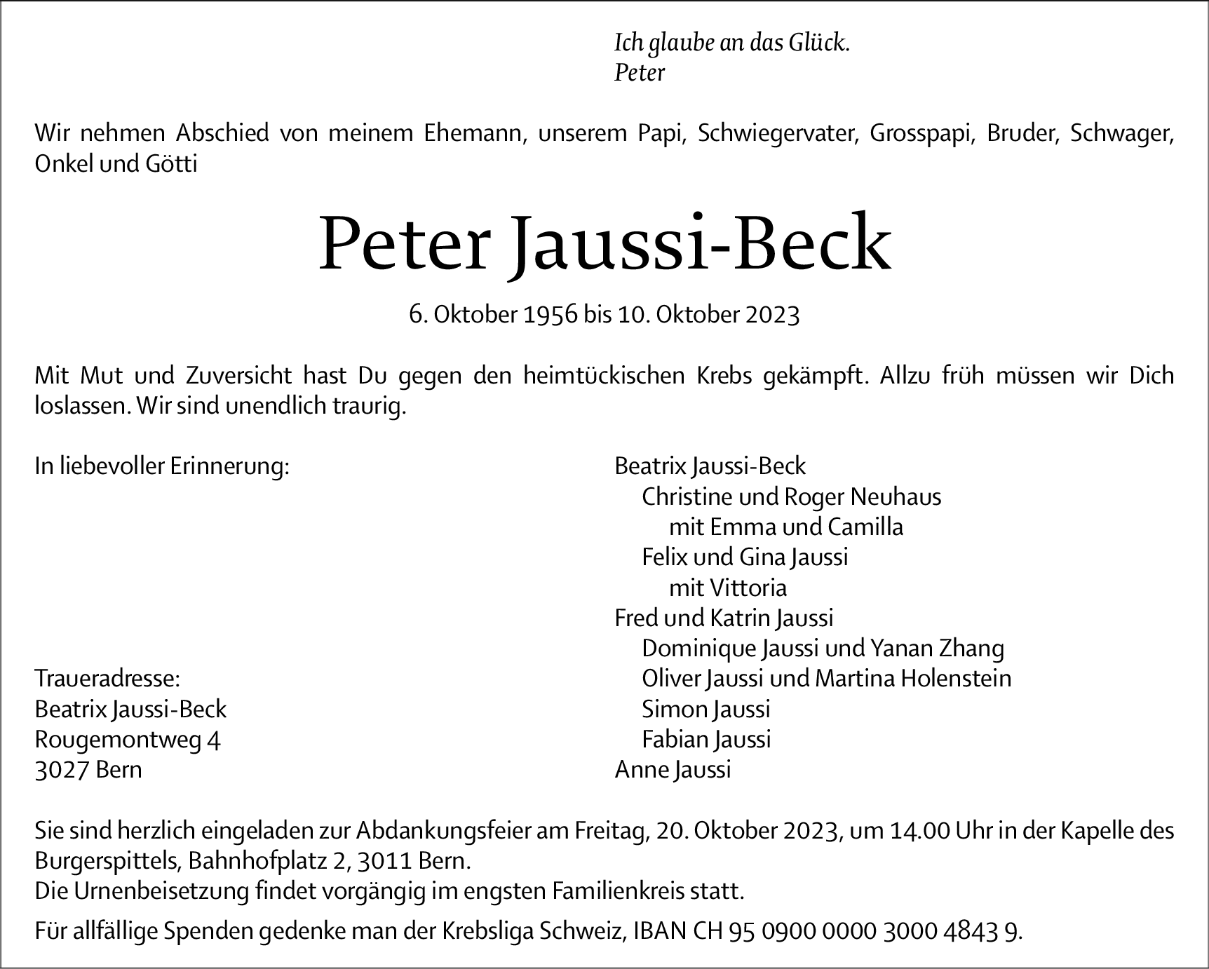 Möchten Sie über neue Todesanzeigen und Kondolenzen für diesen Verstorbenen informiert werden?