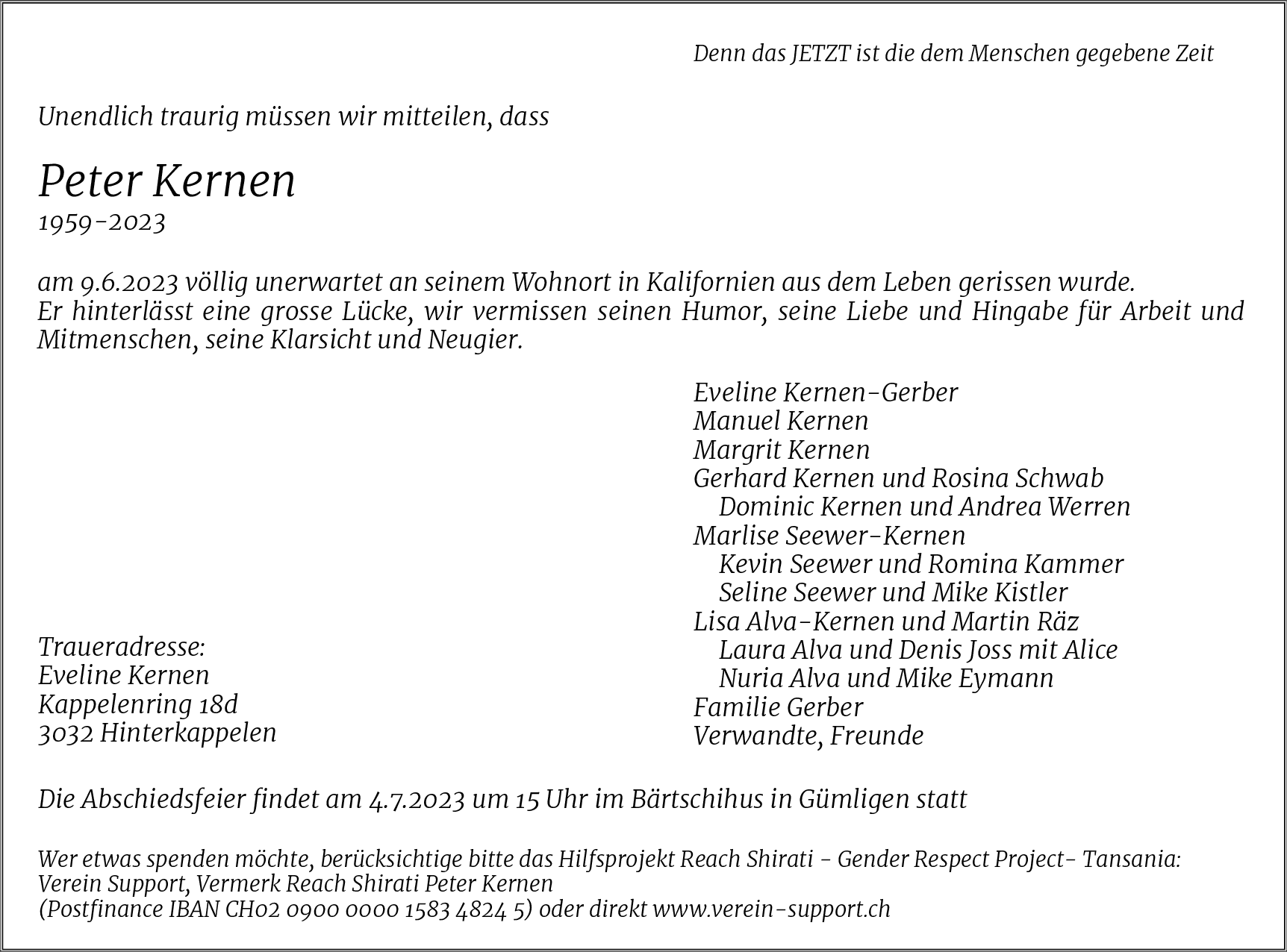 Möchten Sie über neue Todesanzeigen und Kondolenzen für diesen Verstorbenen informiert werden?
