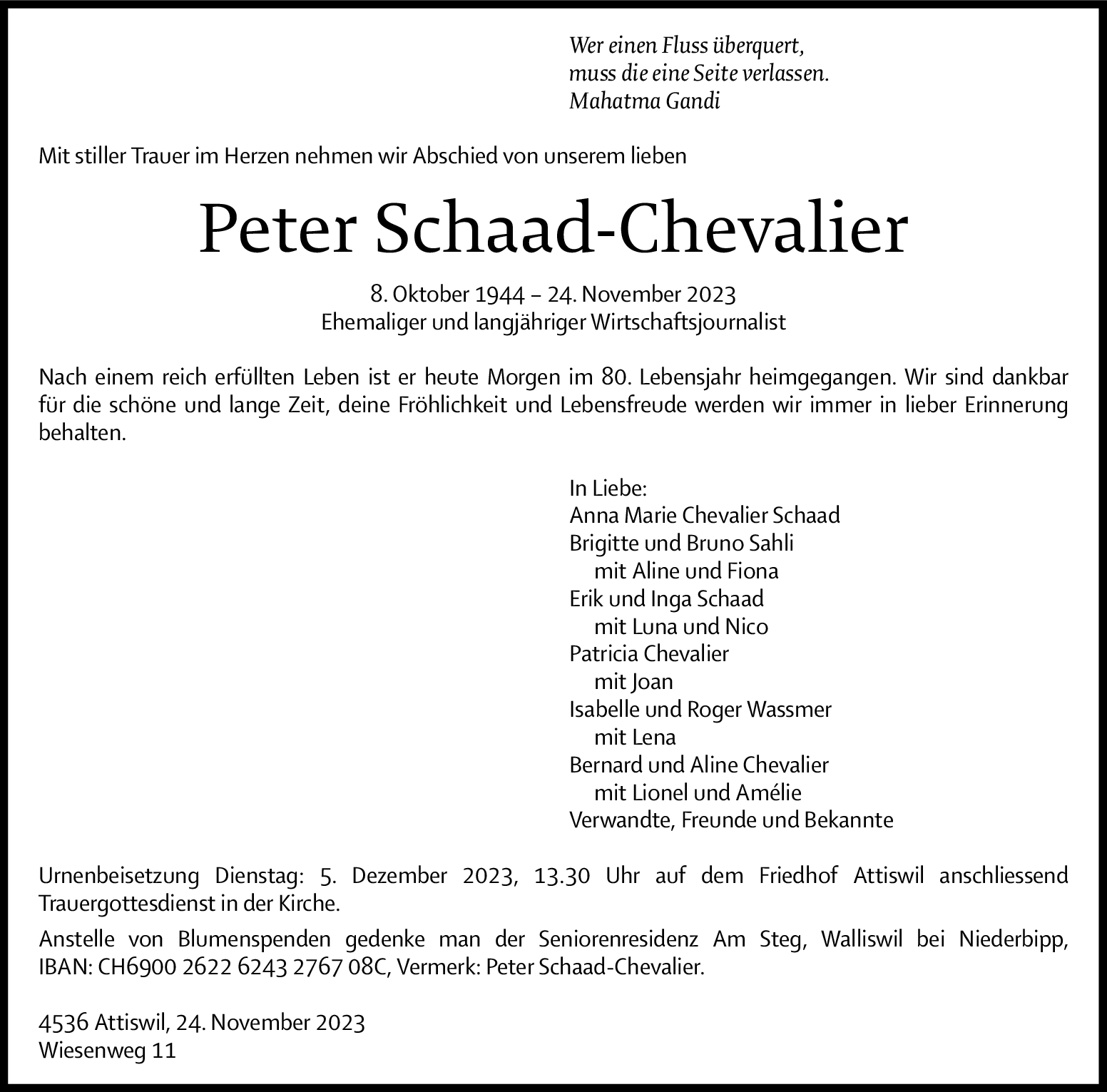 Möchten Sie über neue Todesanzeigen und Kondolenzen für diesen Verstorbenen informiert werden?