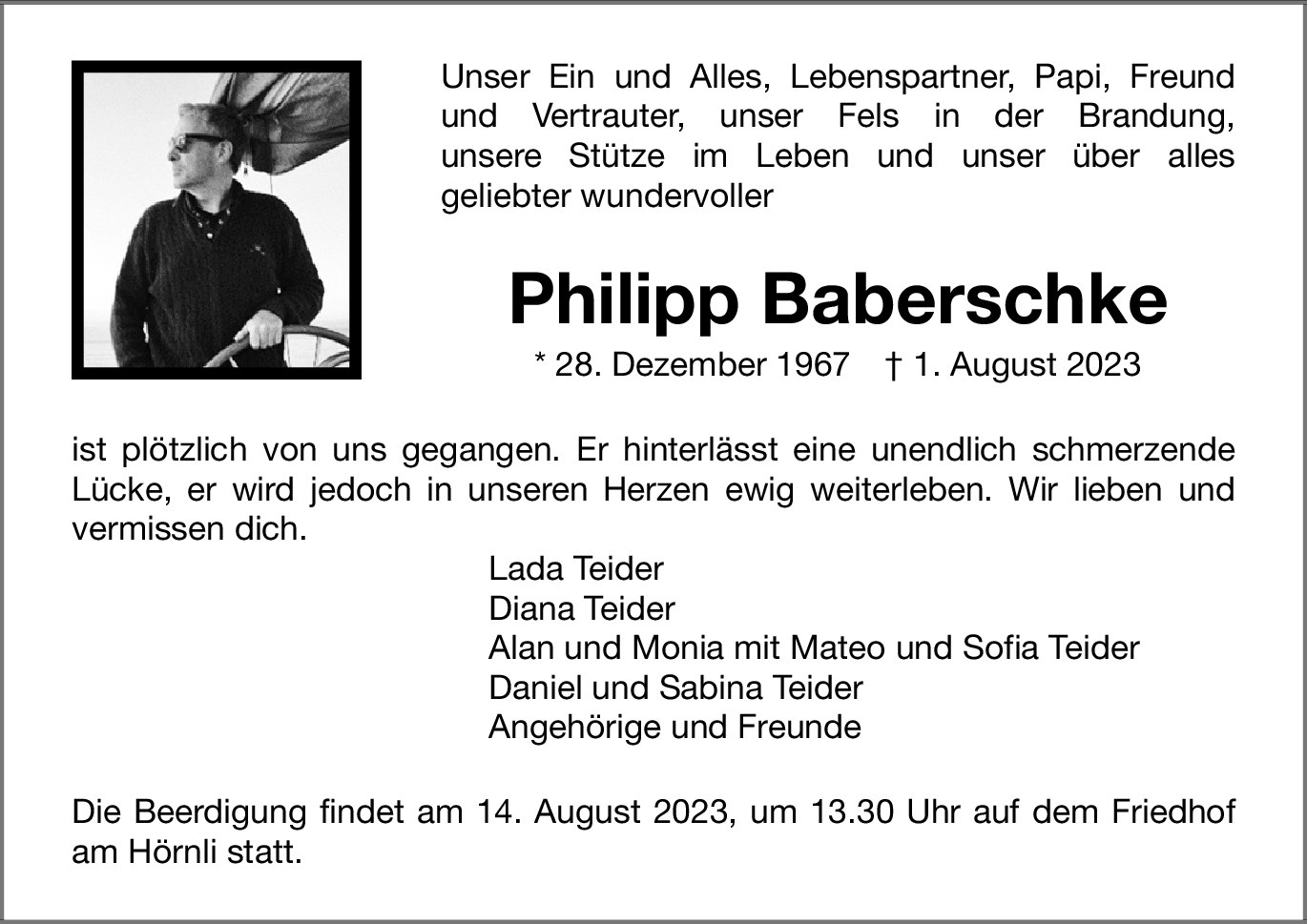 Möchten Sie über neue Todesanzeigen und Kondolenzen für diesen Verstorbenen informiert werden?