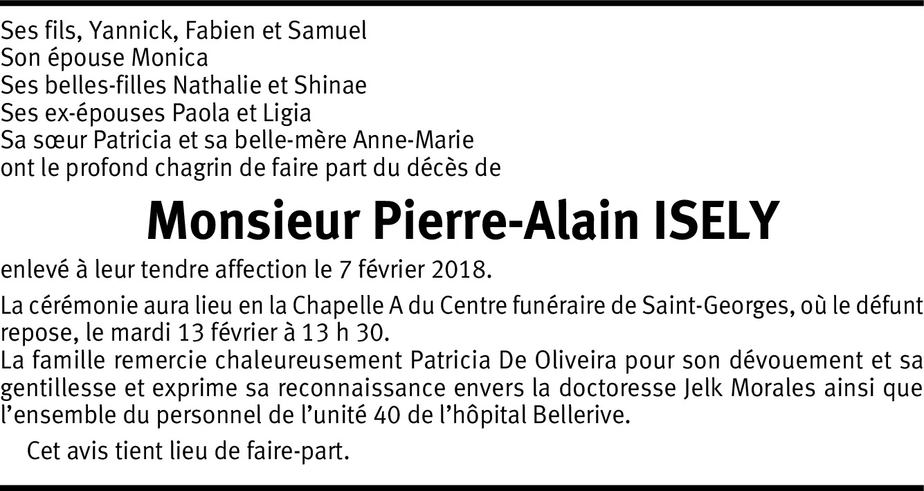 Pierre-Alain était un inlassable curieux, passionné de sciences et de technologie, admirateur de la nature et des animaux, parfois méfiant des Hommes – mais sans se départir d’un authentique humanisme. « Tout un homme, fait de tous les hommes, et qui les vaut tous et que vaut n’importe qui », se décrit Sartre dans une pirouette à la fin de son autobiographie. Pierre-Alain avait cette modestie de se prendre pour n’importe qui: avec ses connaissances techniques d’ingénieur, ses moyens, il ne se plaçait jamais au-dessus des autres: j’ai rarement vu quelqu’un détester autant le mépris de classe, d’où découlent les grandes injustices sociales. Est-ce pour cette raison qu’il ne pouvait pas s’empêcher d’aider ceux qu’il voyait souffrir? Tout le long de sa vie, il a aidé. Il reconnaissait lui-même qu’il avait un côté « saint-bernard » qui l’avait parfois enfoncé, mais contre lequel il ne pouvait pas lutter. Et dans ses excès, ses avis parfois tranchés, il n’y avait jamais la moindre trace de cynisme. Il savait aussi profiter des bons moments à partager. Plus Epicurien qu’Hédoniste, il était ouvert aux musiques de tous horizons, et vouait une passion pour la vitesse; le choix de ses motos aux grosses cylindrées ne trompait personne. Il adorait tout ce qui roulait ou glissait: des rollers à la trottinette, du vélo électrique au scooter, mais aussi le ski, le bateau, à voile ou à moteur… Et sans artifice mécanique, il aimait le sport sous toutes les formes – tous ceux qui ont joué avec lui connaissaient le compétiteur redoutable, exigeant avec lui-même, toujours fair-play avec ses adversaires. Difficile de comprendre d’où il puisait toute cette énergie, mais comment ne pas évoquer ses fils, dont il était si fier, et qui ont été ses piliers dans sa vie. J’ai perdu un ami et je sais que rien ne remplace ceux qui partent; mais lui a tout perdu ici-bas, lui qui aimait tant la vie. Les dernières années ont été difficiles, mais ce serait injuste de ne pas rappeler qu’il était un homme joyeux. Qu’un rien pouvait l’amuser. Qu’il aimait rire! Je dois dire, au nom de tous ceux que je connais l’ayant côtoyé, que sa disparition a beaucoup choqué et peiné, car tous avaient perçu sa valeur. C’est une chance et un honneur d’avoir pu compter parmi ses amis. D’avoir été là , dans sa vie, trop courte, semée d’embûches, mais aussi avec ses victoires, ses joies, et pleinement vécue. Et même cette maladie féroce n’en occultera pas le souvenir.