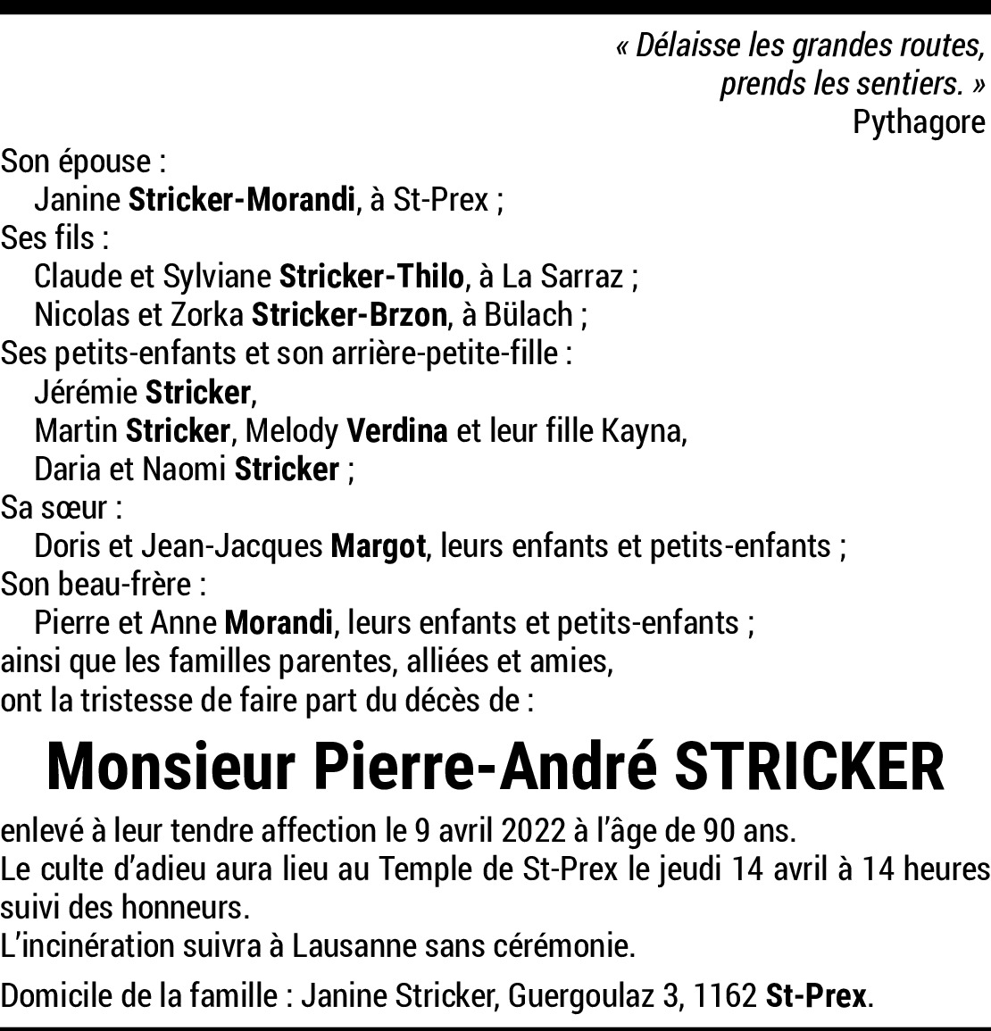 11.04.2022 Melden Toute ma sympathie en ces jours de séparation Daniel Berger ex-facteur à St-Prex Von Berger