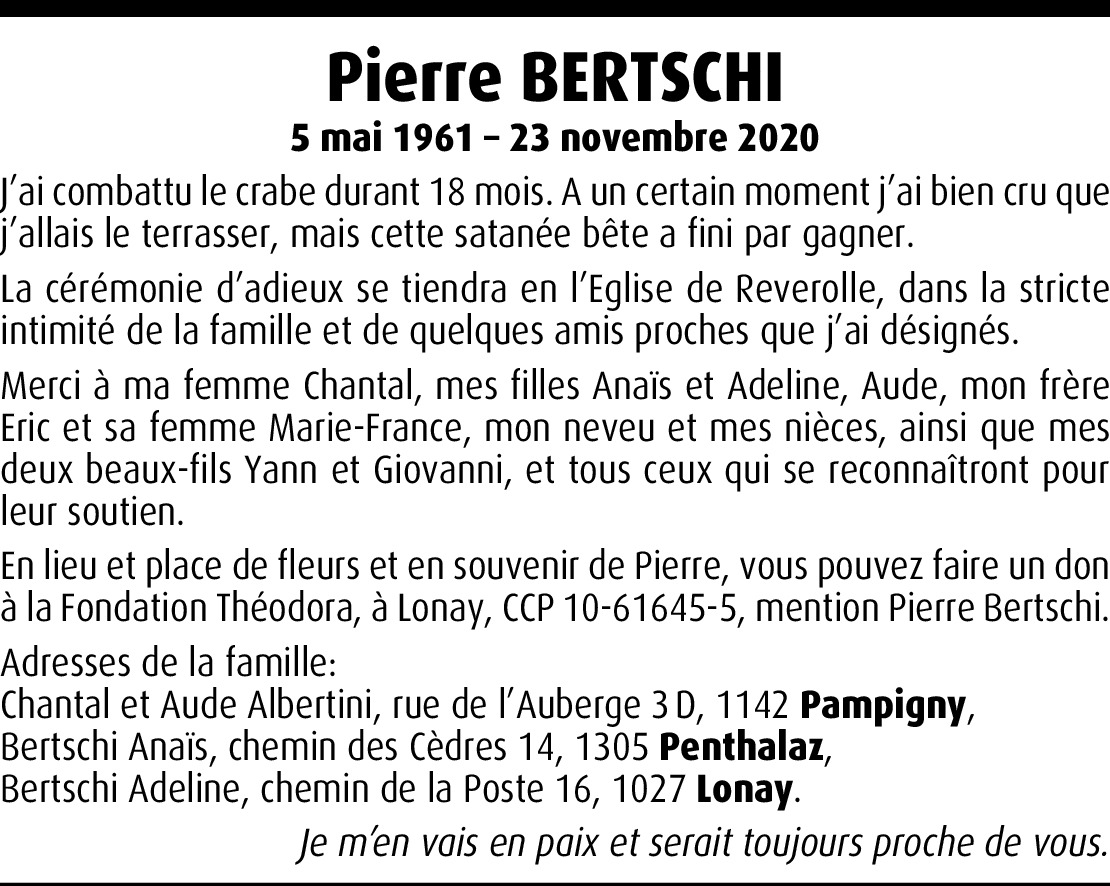 Lors de la perte d'un être cher, notre peine est immense. Dans ces moments de douleurs profondes, les gens se rassemblent pour soutenir ceux qui restent. La situation actuelle rend ma présence impossible, cependant, j'espère que cette pensée sincère de sympathie et de compréhension pourra vous être d'un certain réconfort. Mes plus sincères condoléances.