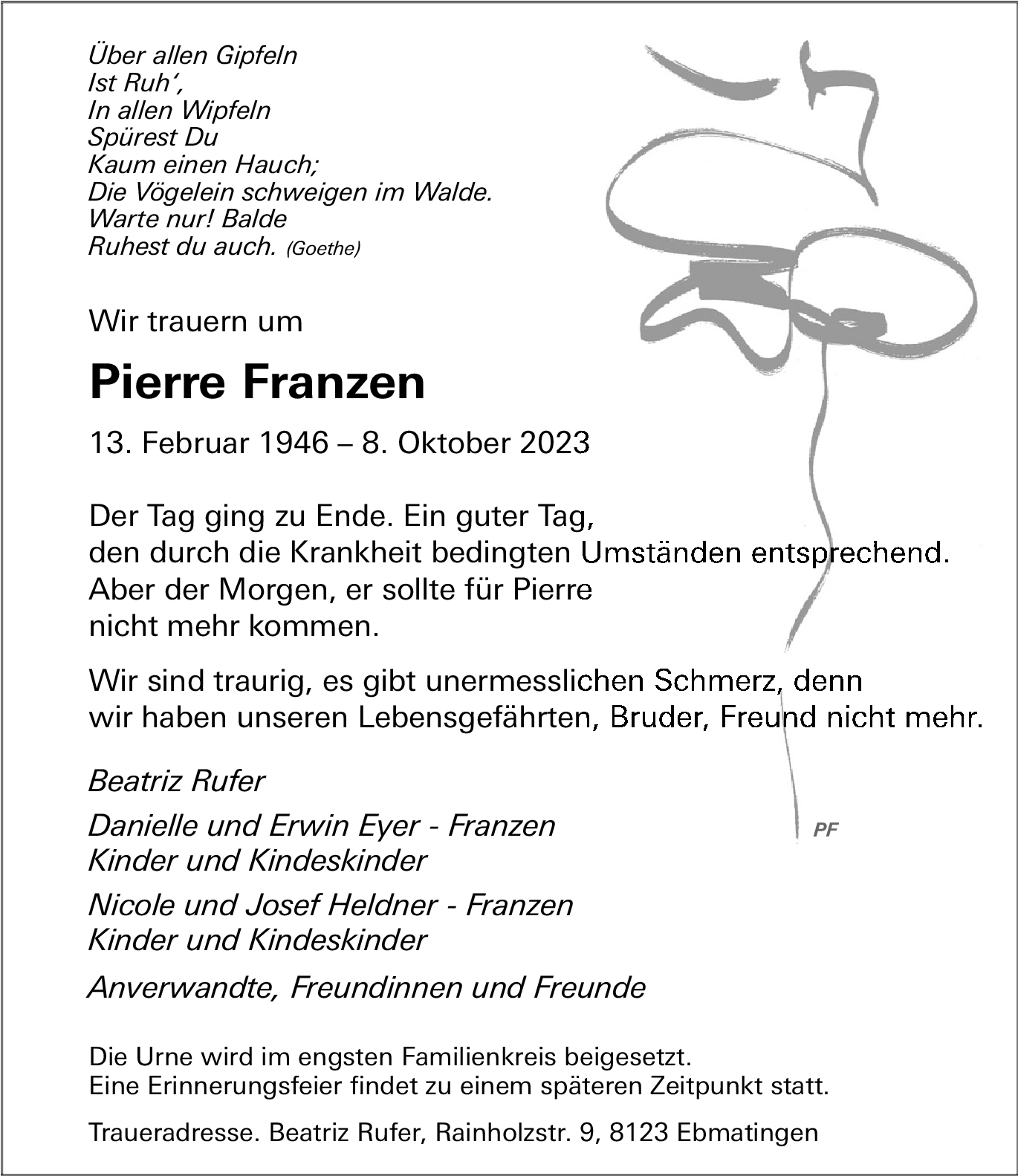 Möchten Sie über neue Todesanzeigen und Kondolenzen für diesen Verstorbenen informiert werden?