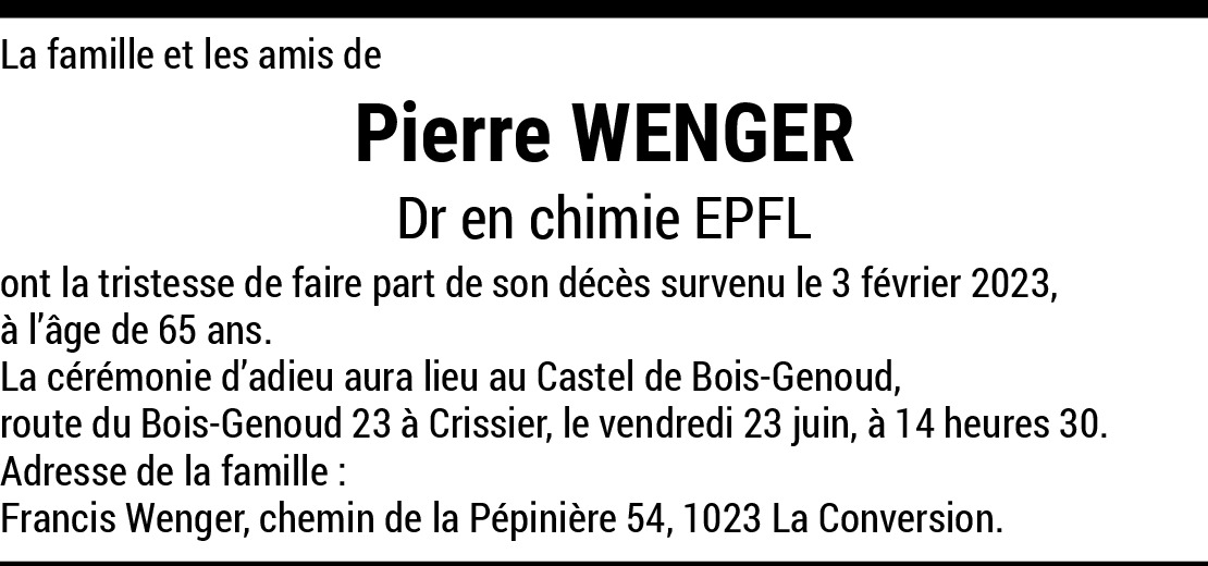 23.06.2023 Melden Nous vous présentons nos sincères condoléances et toute notre sympathie pour le décès de Pierre. En pensées avec vous. Willy et Eliane Espagne Von Aeberhard
