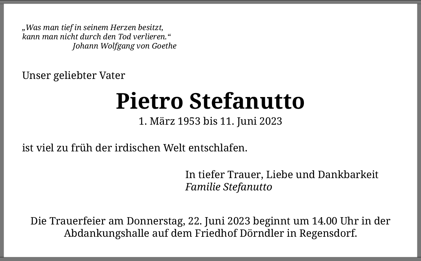 Möchten Sie über neue Todesanzeigen und Kondolenzen für diesen Verstorbenen informiert werden?