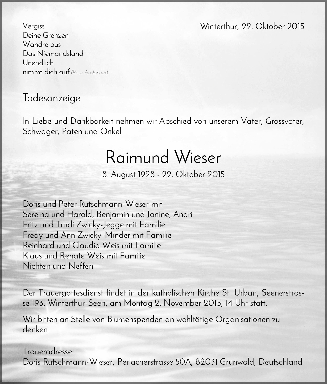 Möchten Sie über neue Todesanzeigen und Kondolenzen für diesen Verstorbenen informiert werden?