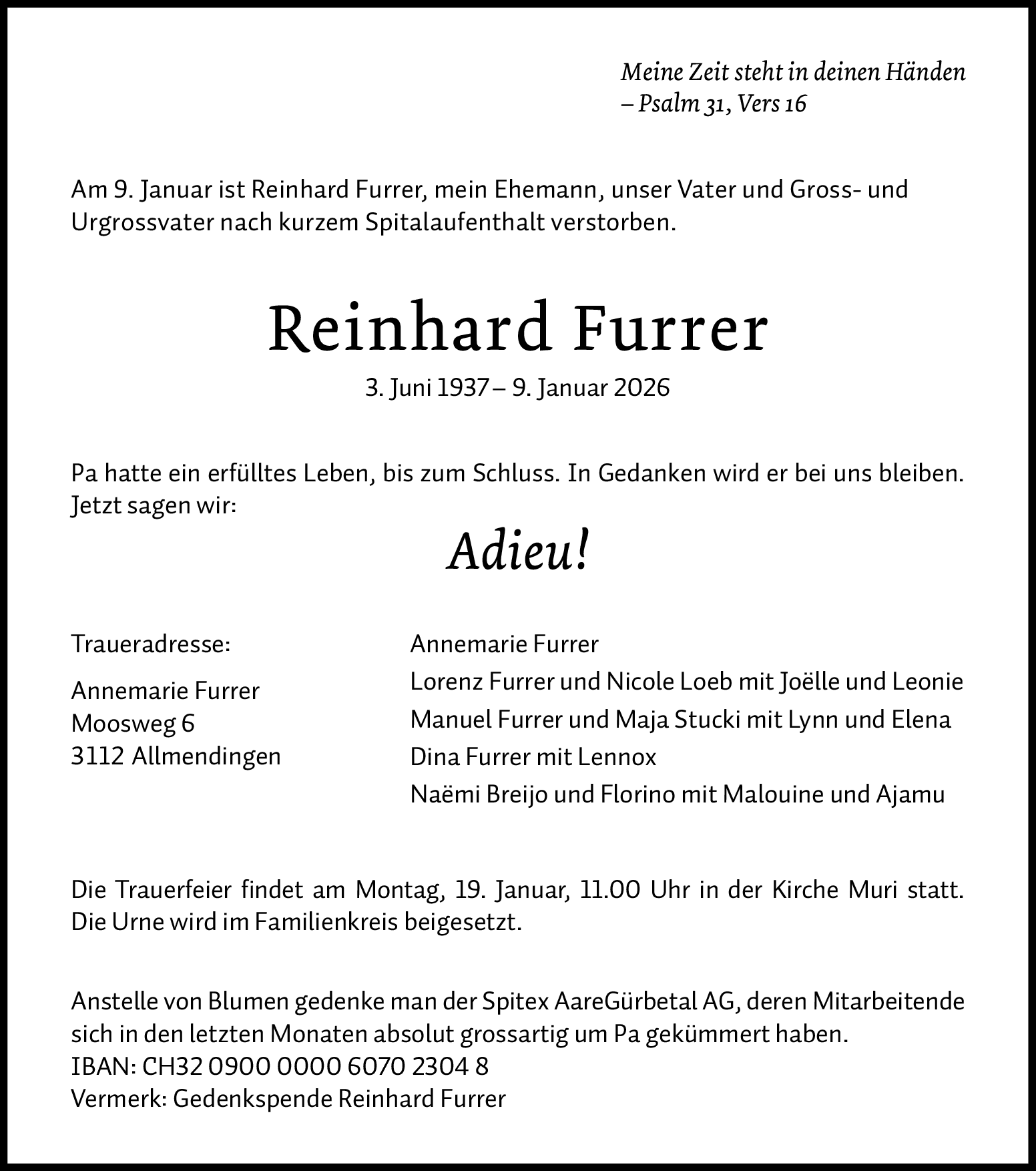 Möchten Sie über neue Todesanzeigen und Kondolenzen für diesen Verstorbenen informiert werden?