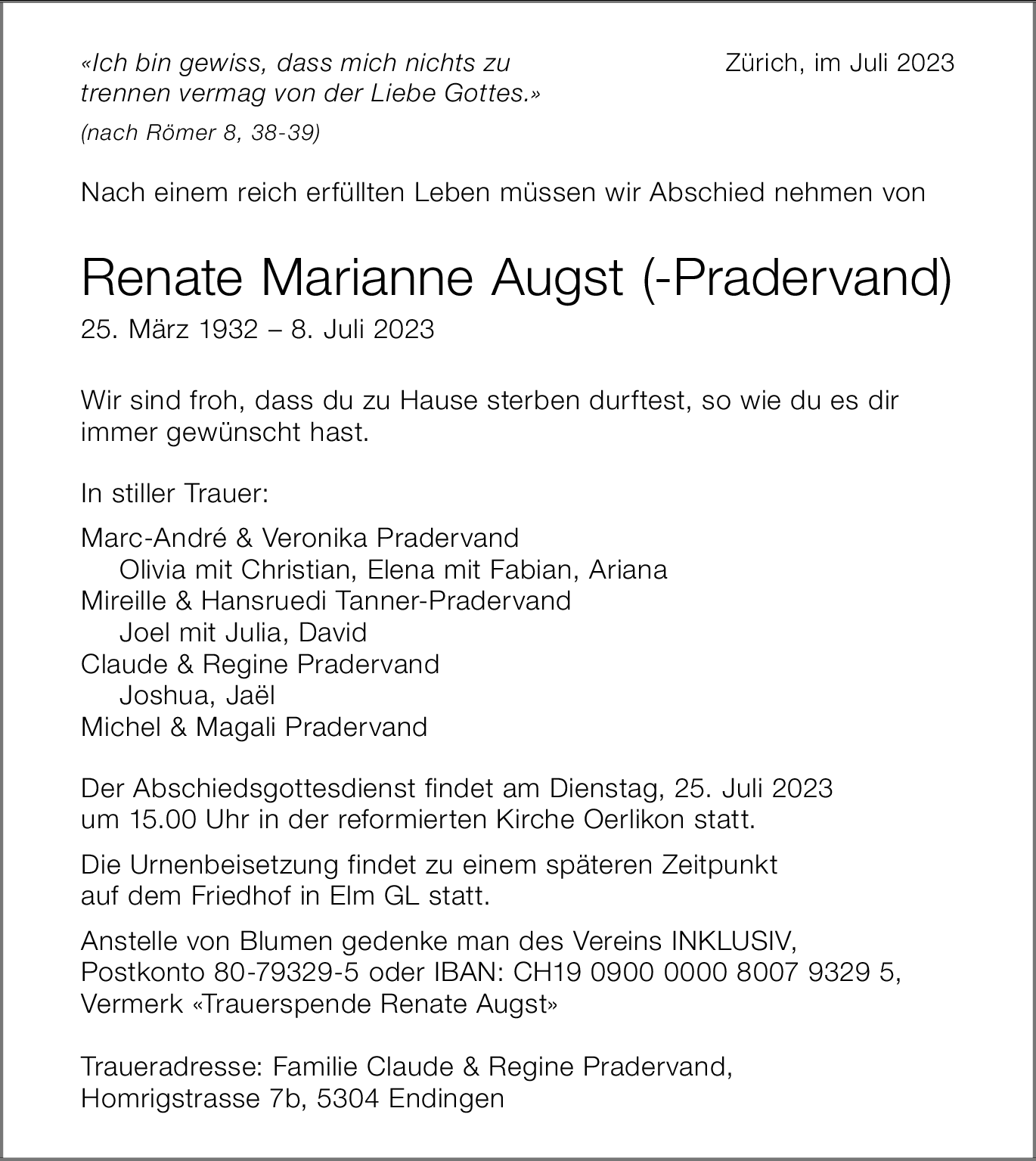 Möchten Sie über neue Todesanzeigen und Kondolenzen für diesen Verstorbenen informiert werden?