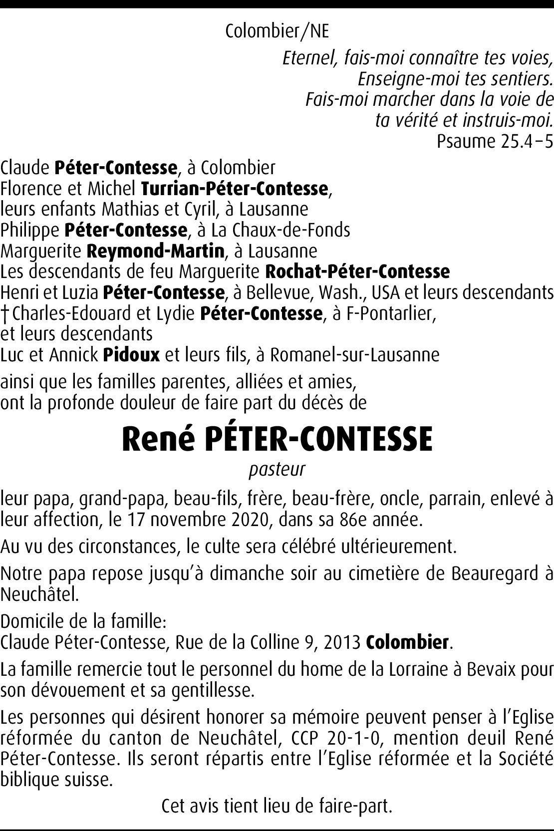 C'est bien tardivement que j'ai eu connaissance du décès de M. René Péter-Contesse.