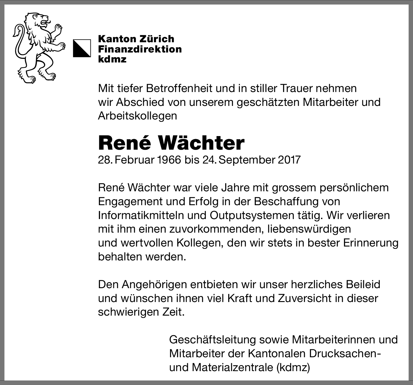 Keine Kondolenzen für den Moment.