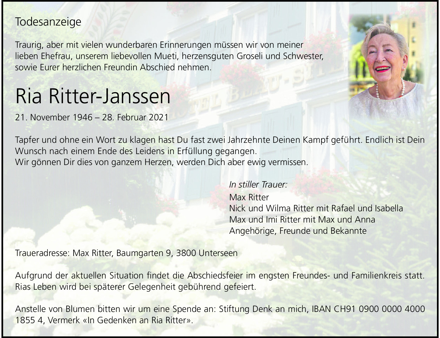 Möchten Sie über neue Todesanzeigen und Kondolenzen für diesen Verstorbenen informiert werden?