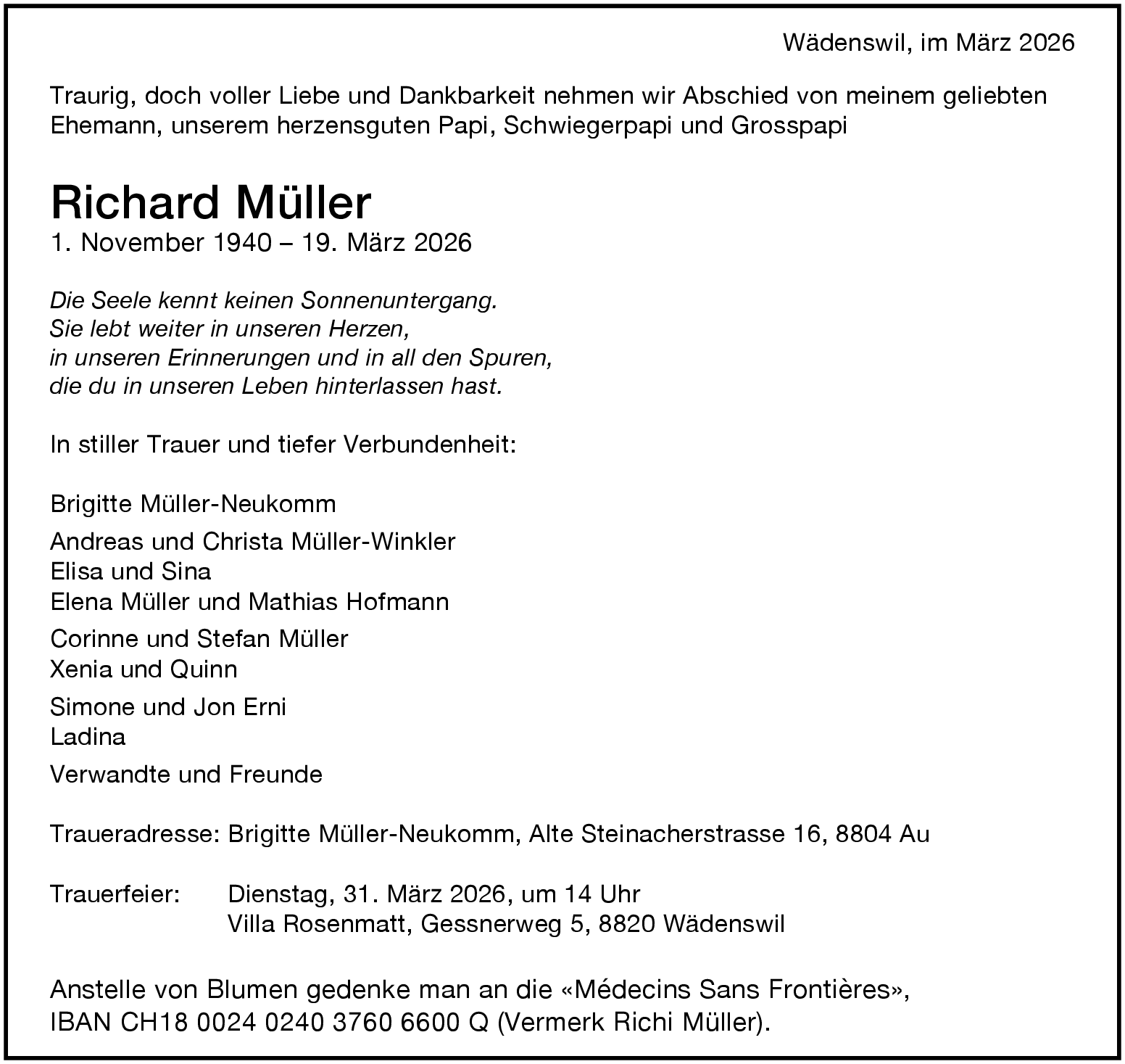 Möchten Sie über neue Todesanzeigen und Kondolenzen für diesen Verstorbenen informiert werden?