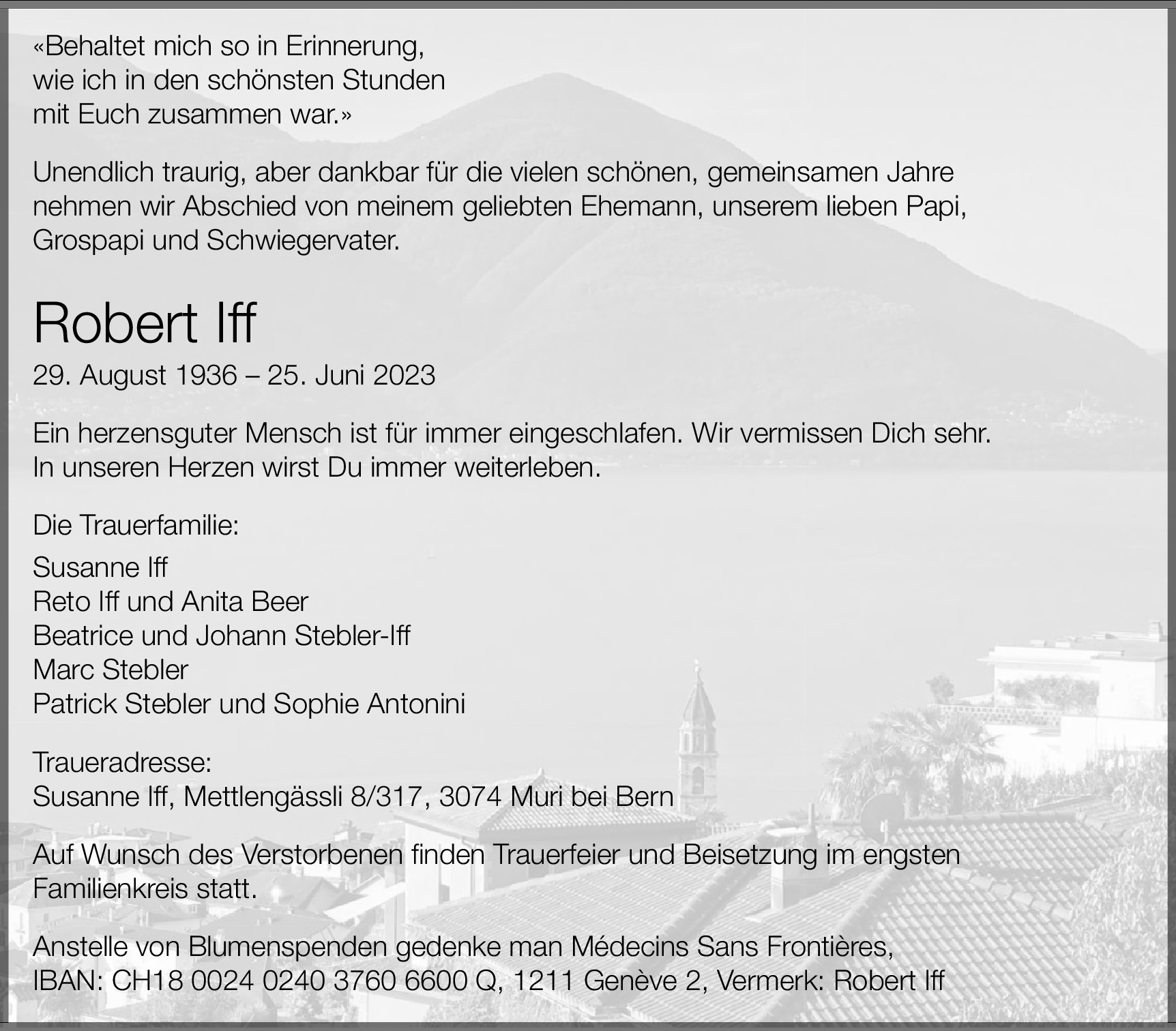 Möchten Sie über neue Todesanzeigen und Kondolenzen für diesen Verstorbenen informiert werden?