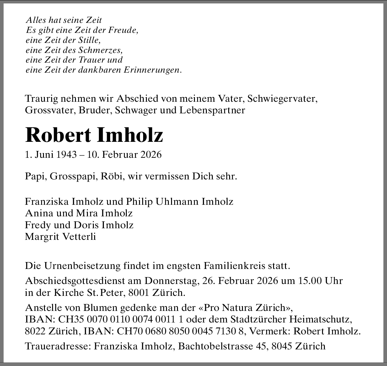 Möchten Sie über neue Todesanzeigen und Kondolenzen für diesen Verstorbenen informiert werden?