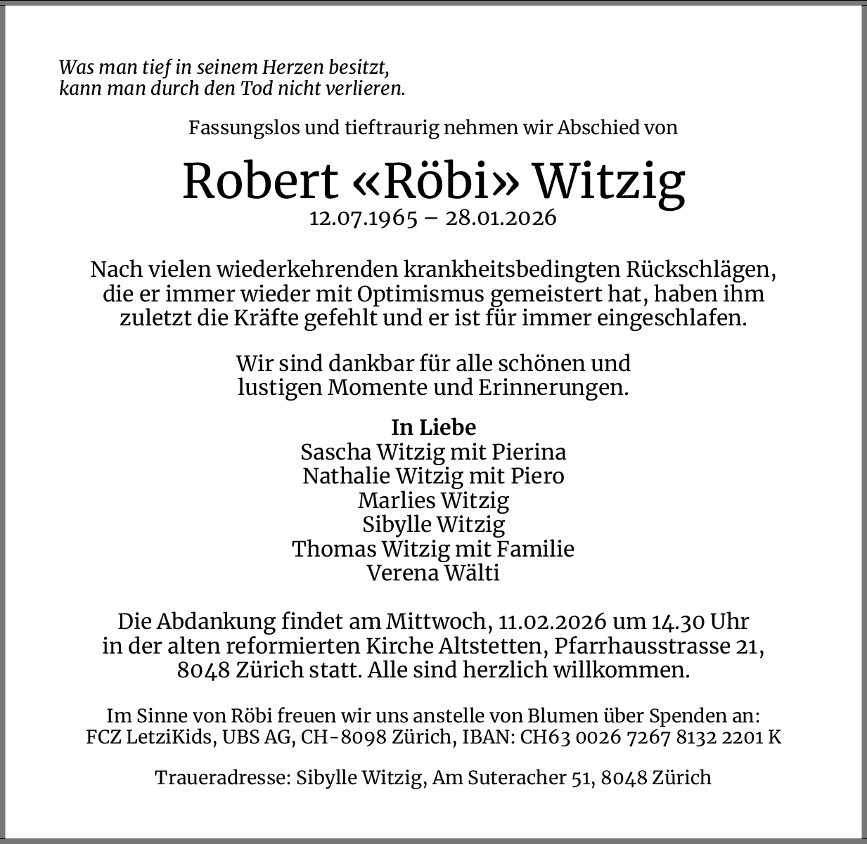 Möchten Sie über neue Todesanzeigen und Kondolenzen für diesen Verstorbenen informiert werden?