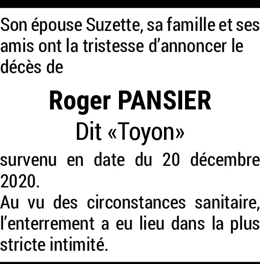 C’est avec tristesse que je viens d’apprendre de l’envol de Roger. Tant de souvenirs merveilleux me reviennent à l’esprit mais, dans cette phase de grand deuil, mes premières pensées vont a toi. Reçois, chère Suzy, mon souvenir attristé et mes pensées affectueuses.
