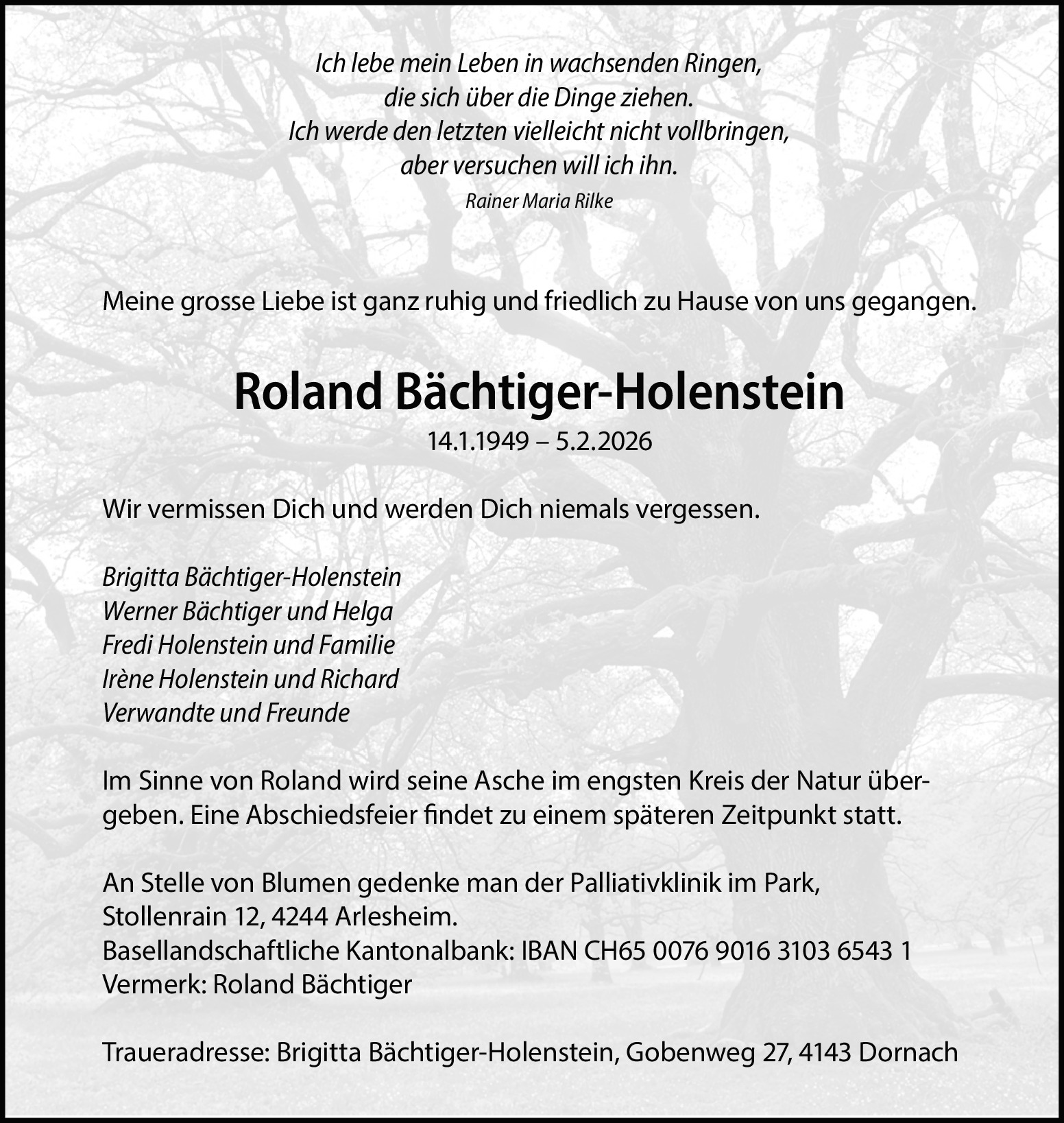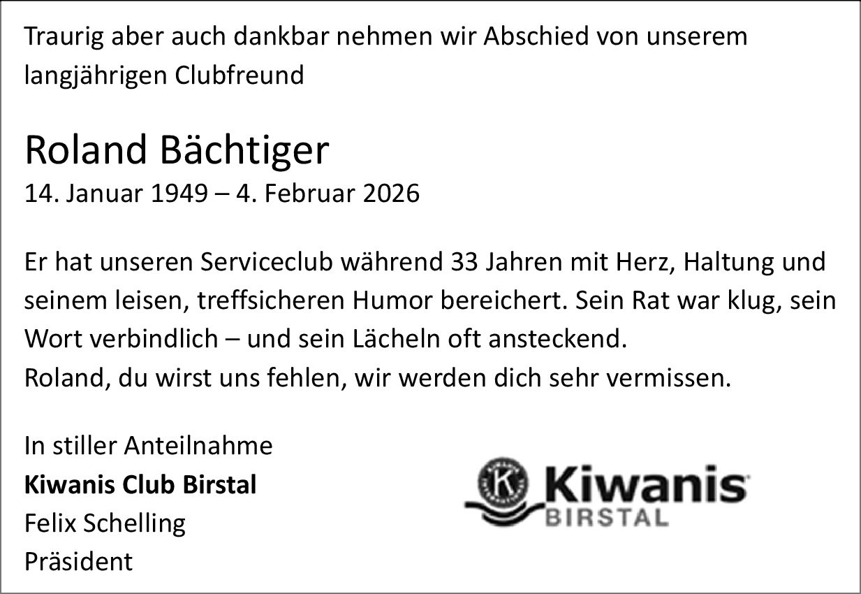 zu früh 11.02.2026 Melden es bleibt die Erinnerung an eine starke Persönlichkeit, grossartigen Gastgeber und Weinkenner. Zu früh, zu schnell, aber erlöst. Herzliches Beileid Von Chrismar Kuhn Meury