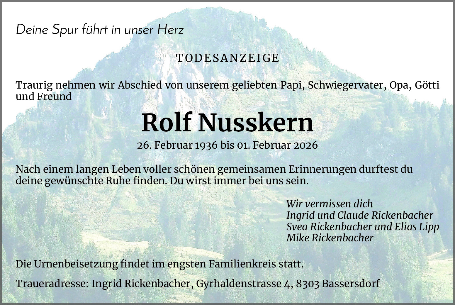 Möchten Sie über neue Todesanzeigen und Kondolenzen für diesen Verstorbenen informiert werden?