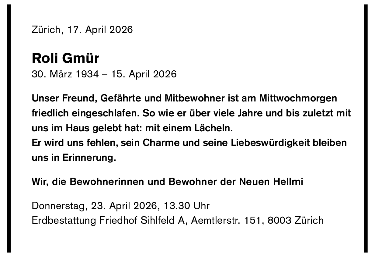 Möchten Sie über neue Todesanzeigen und Kondolenzen für diesen Verstorbenen informiert werden?
