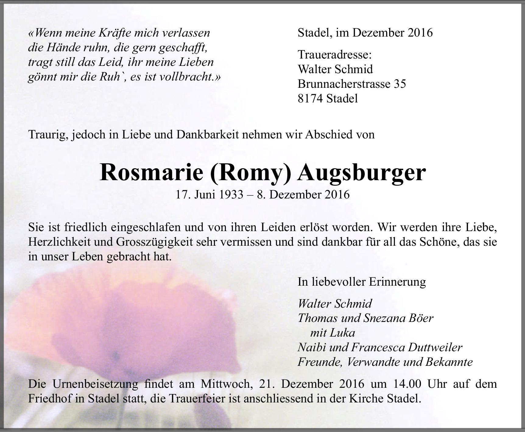 Möchten Sie über neue Todesanzeigen und Kondolenzen für diesen Verstorbenen informiert werden?