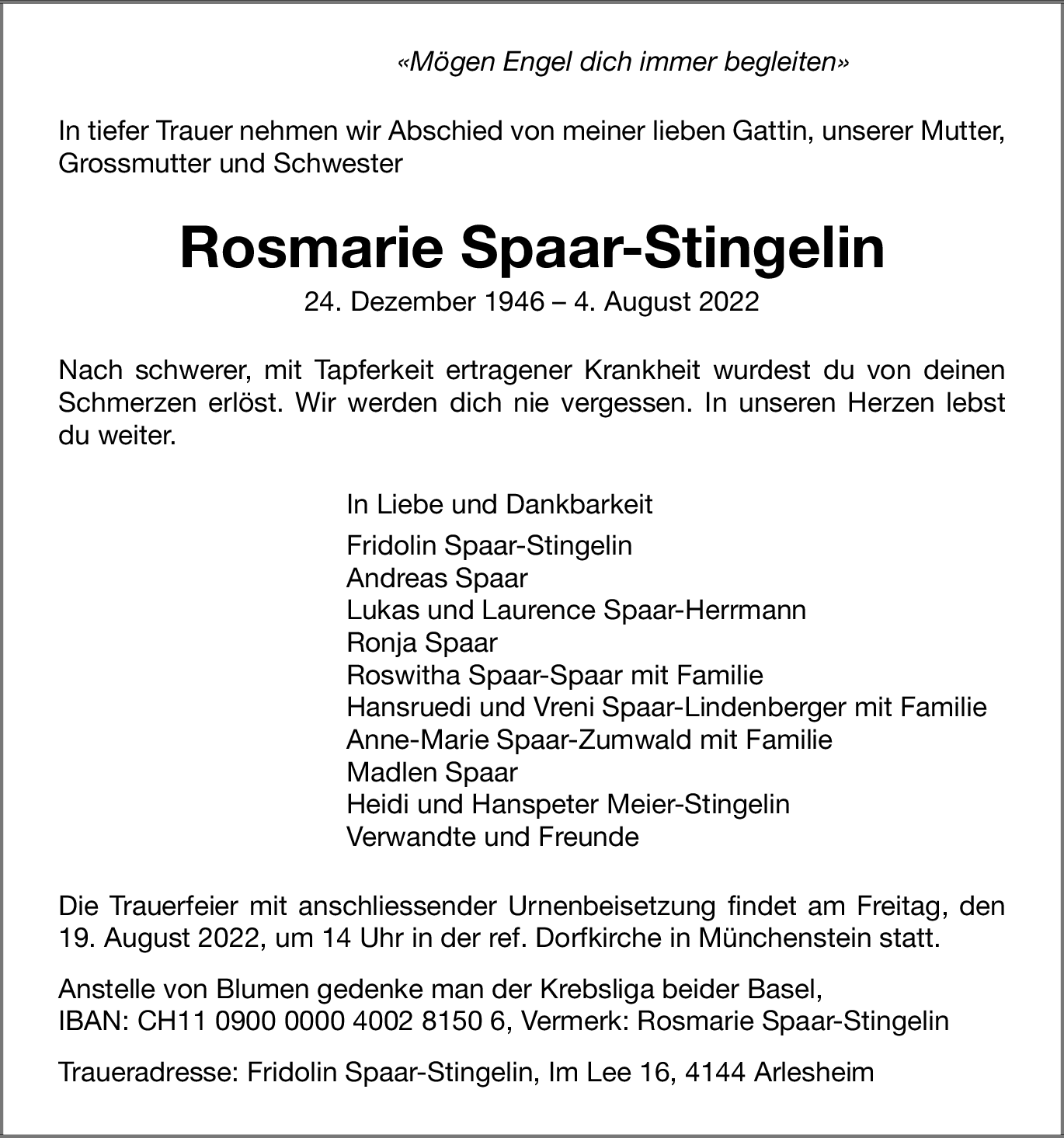 Rosmarie Spaar-Stingelin