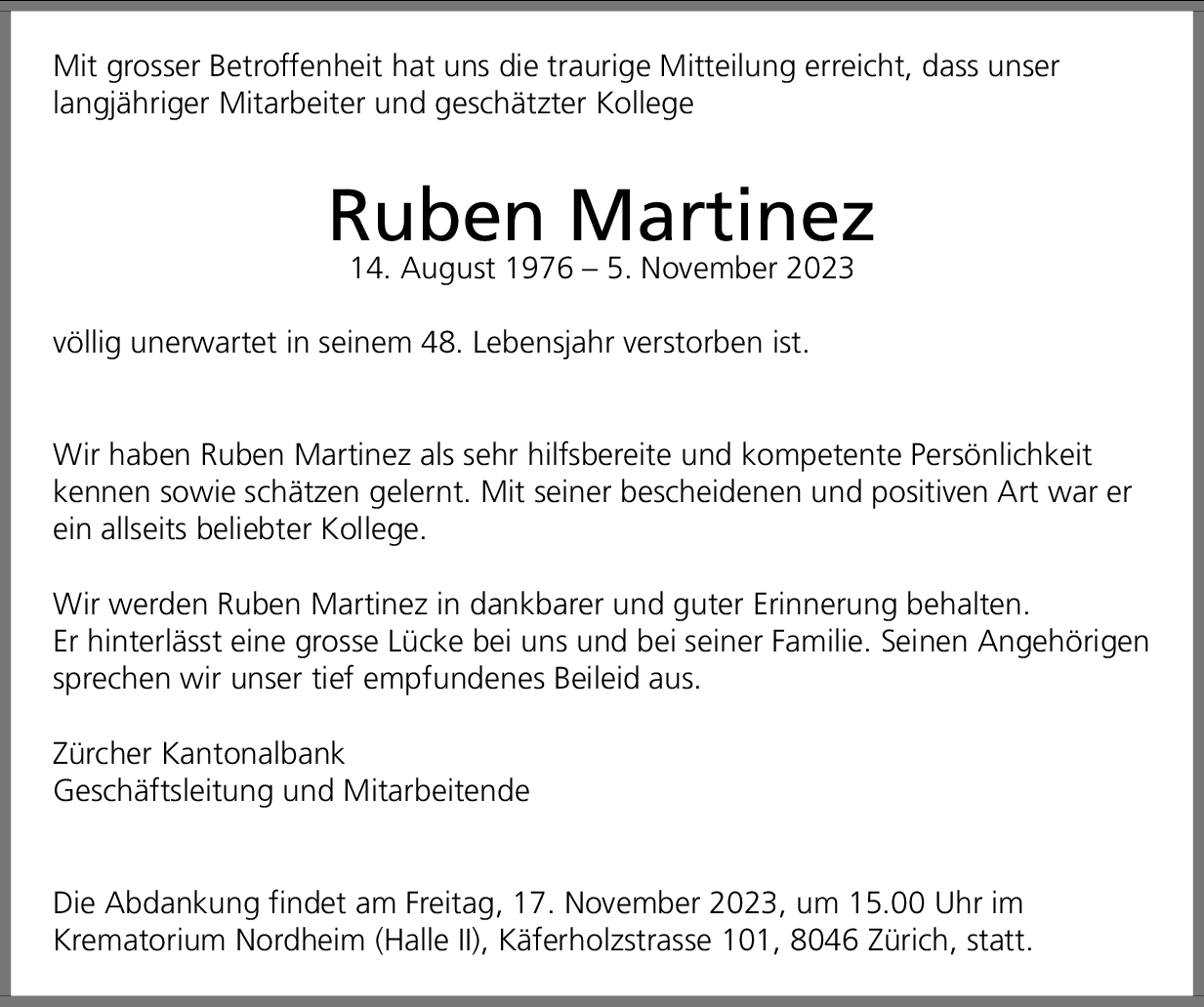 Möchten Sie über neue Todesanzeigen und Kondolenzen für diesen Verstorbenen informiert werden?