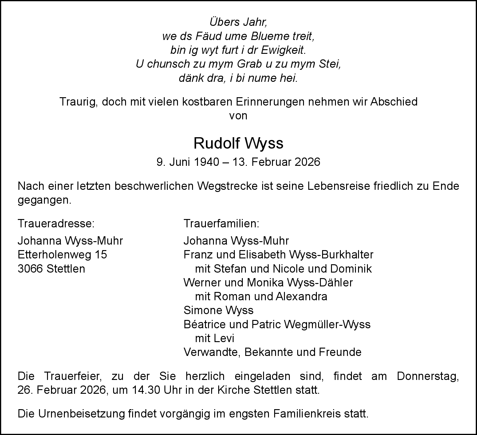Möchten Sie über neue Todesanzeigen und Kondolenzen für diesen Verstorbenen informiert werden?