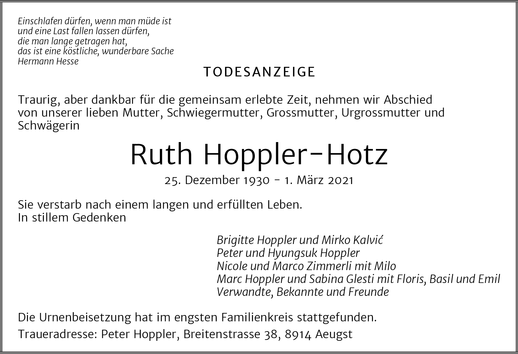 Möchten Sie über neue Todesanzeigen und Kondolenzen für diesen Verstorbenen informiert werden?