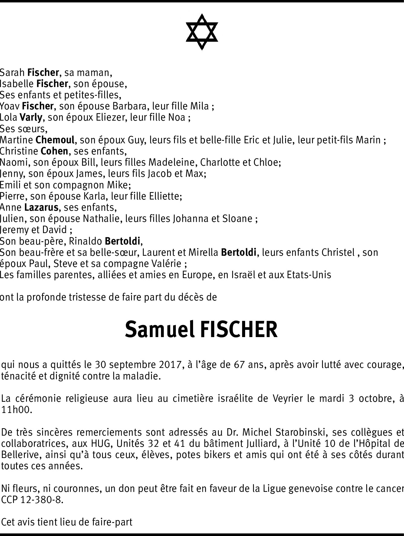 C'est avec une grande émotion que j'apprends la triste nouvelle. J'ai connu Samuel il y a de longues années quand il donnait des cours d'hébreux à Genève. Sa grande connaissance de la Torah et sa façon spontanée et originale de donner ses cours nous ont, ma famille et moi, vraiment subjugués. Un grand personnage et une très belle personne. Mes pensées vont vers ses proches. Avec toute ma compassion. Christine Lecoeur (famille Minacori)