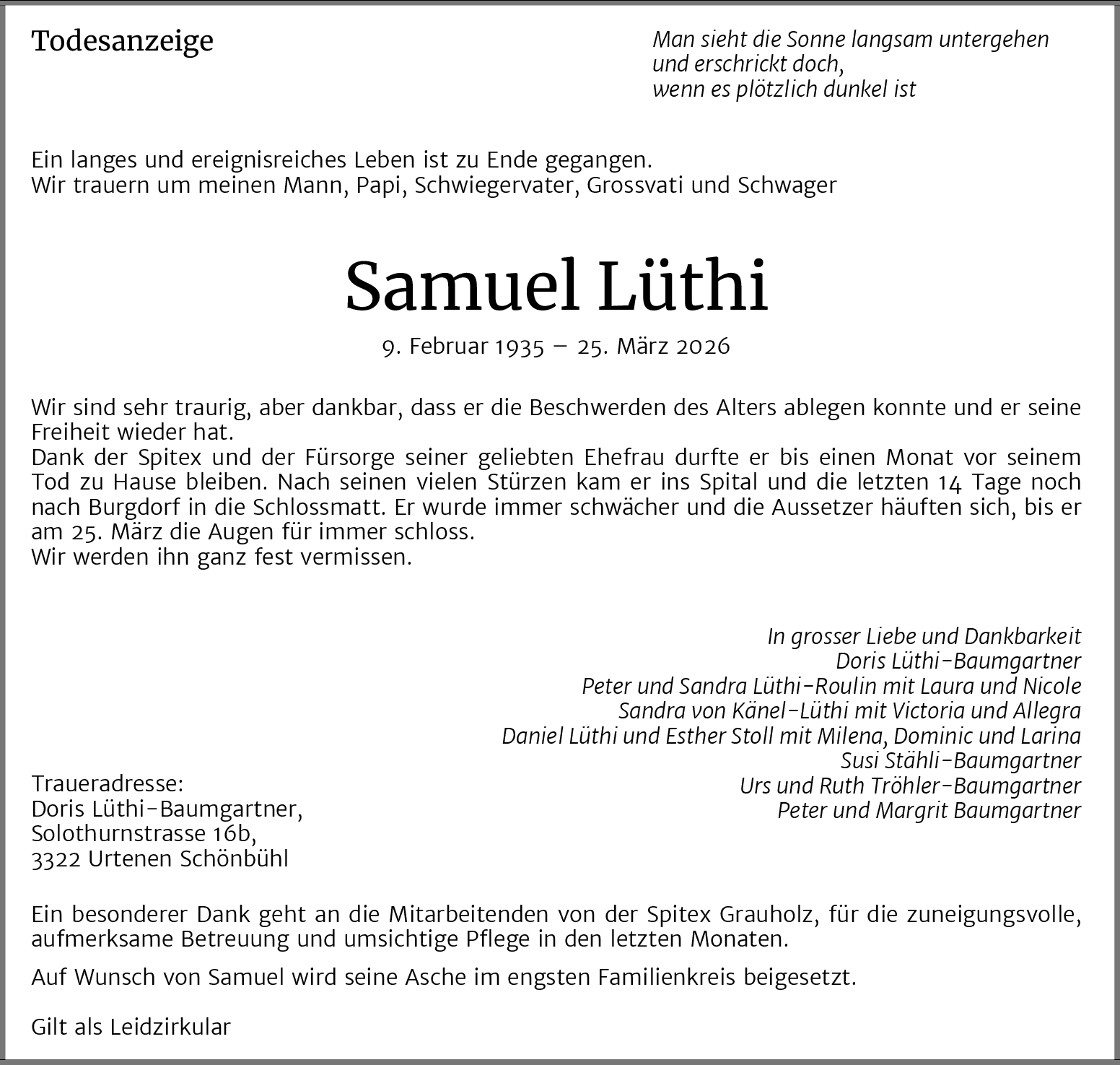 Möchten Sie über neue Todesanzeigen und Kondolenzen für diesen Verstorbenen informiert werden?