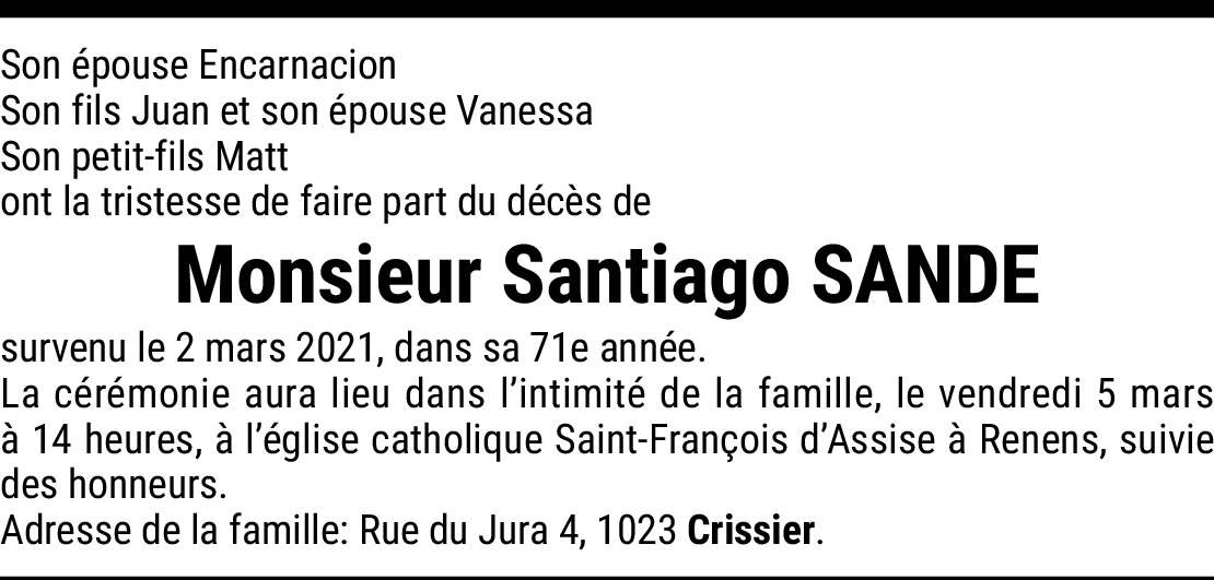 Nous savons que vous êtes durement éprouvés par la perte d'un être aimé. En ces heures sombres de votre vie, vous êtes dans toutes nos pensées. Espérant que le temps effacera lentement la douleur et illuminera en votre cœur le souvenir des bons moments.