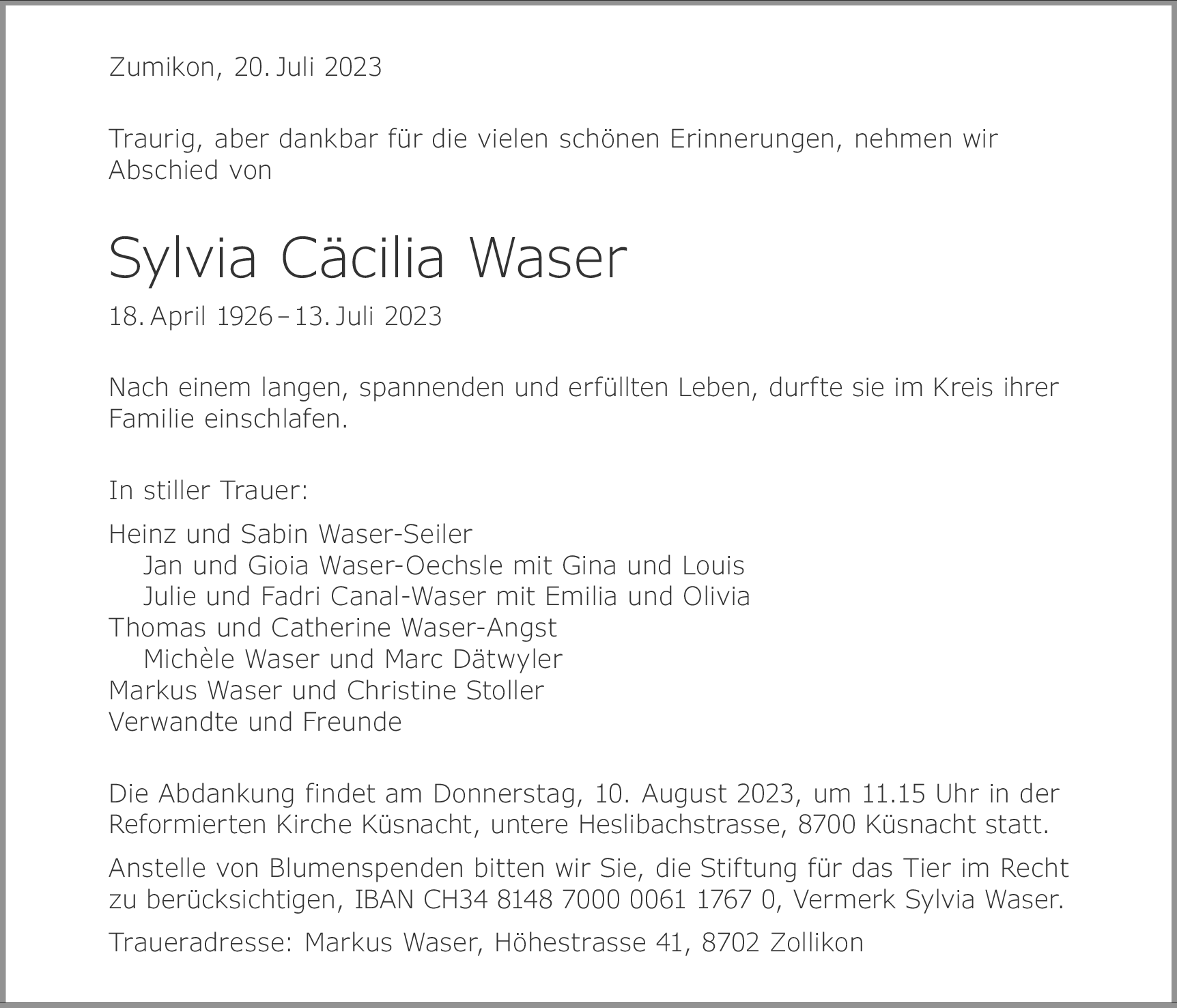 Möchten Sie über neue Todesanzeigen und Kondolenzen für diesen Verstorbenen informiert werden?