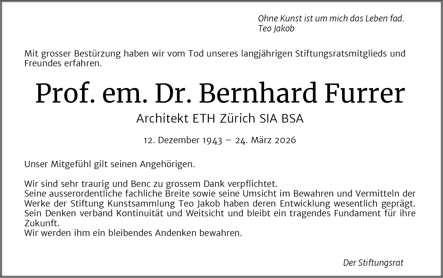 Möchten Sie über neue Todesanzeigen und Kondolenzen für diesen Verstorbenen informiert werden?